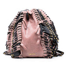 Craquele Leather Embellished Fringe Bucket Bag