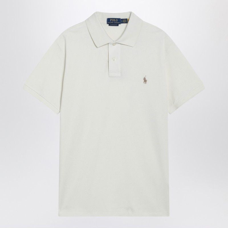 Elevate your everyday wardrobe with this sophisticated cream-colored cotton polo shirt from Polo Ralph Lauren. Crafted in a custom slim-fit silhouette, this timeless piece features the iconic embroidered logo on the chest, a classic front button placket, and practical side slits for enhanced comfort and movement.