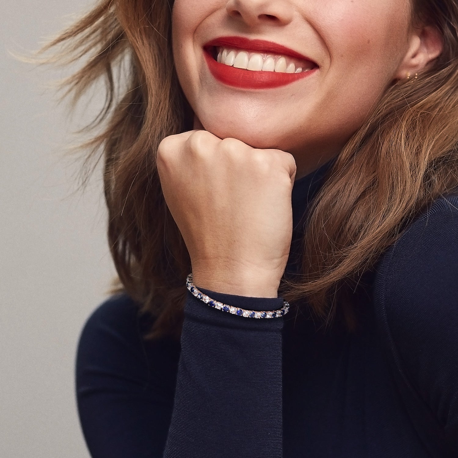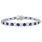This gorgeous tennis bracelet features round-cut alternating created gemstone and created white sapphires set in sterling silver. This stunning piece is secured with a box-with-tongue clasp.