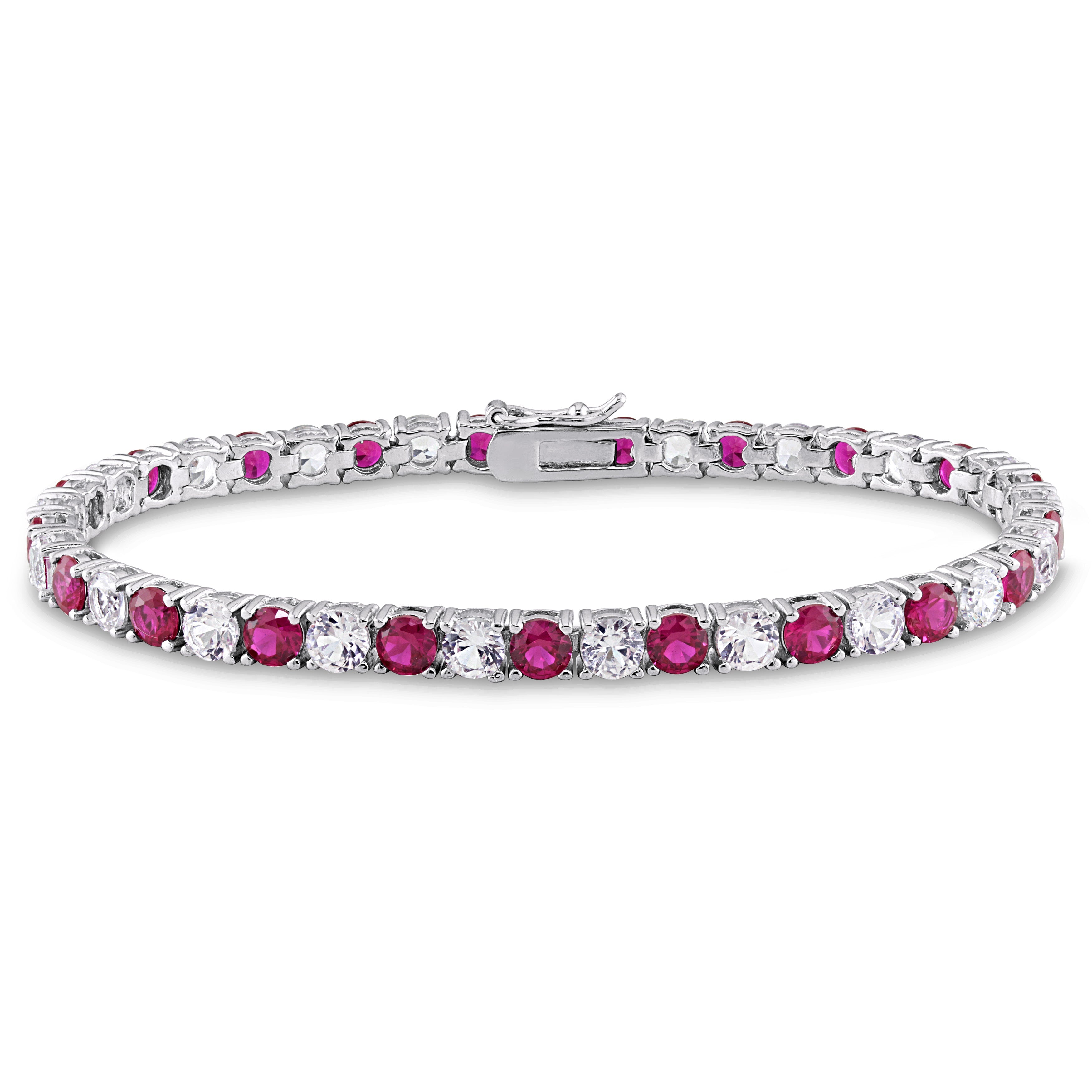 Created Gemstone & White Sapphire Tennis Bracelet in Sterling Silver