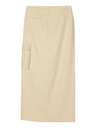 SESAME BEIGE LYOCELL CREPE TEXTURE TONAL STITCHING CLASSIC FIVE POCKETS SIDE CARGO POCKET FRONT SLIT FULL-LENGTH STRAIGHT HEM CONCEALED FLY AND BUTTON FASTENING