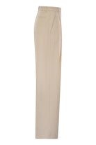 LIGHTWEIGHT CREPE TROUSERS WITH REGULAR FIT. FRONT FRENCH POCKETS AND BACK WELT POCKETS. CONTRASTING DARTS AND TOPSTITCHING DETAILS ADD DEFINITION. A TOUCH OF LIGHT COMES FROM THE GOLD METAL LOGO CHARM ON THE BELT LOOP. - GOLD METAL LOGO DETAIL - FRENCH POCKETS - ZIP AND HOOK FASTENING DESIGNER ID: PA07251E2 193