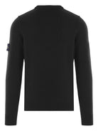 SWEATER IN BLACK WOOL AND NYLON BLEND. FEATURING RIBBED CREW NECK, LONG SLEEVES, STITCHING ON THE ARMHOLE, REVERSE STOCKINETTE STITCH BAND, RIBBED EDGES, AND STONE ISLAND BADGE ON THE LEFT SLEEVE. REGULAR FIT.