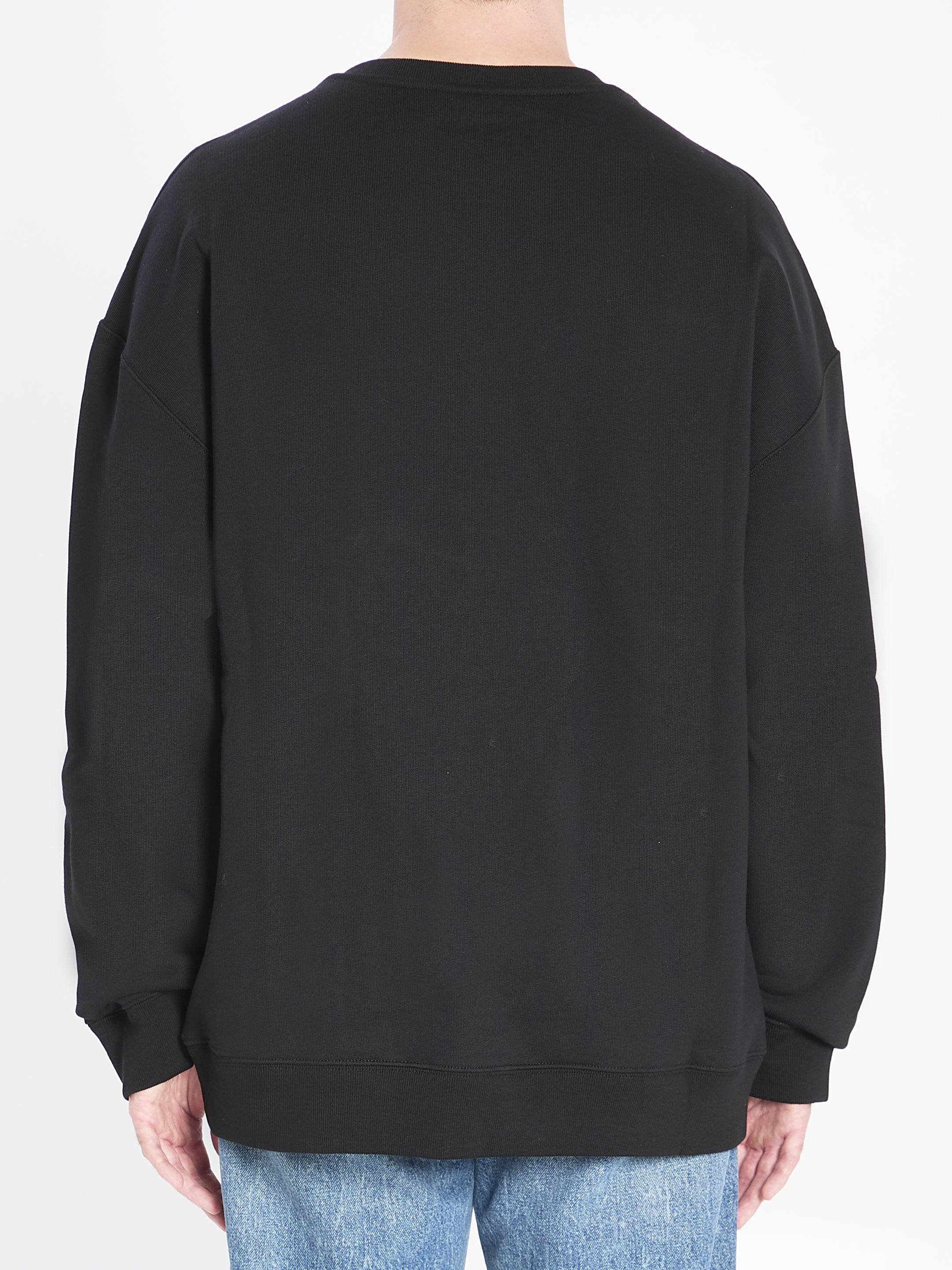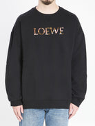 Black cotton sweatshirt. Features ribbed crewneck with V-insert detail, contrasting embroidered LOEWE signature on the front, long sleeves, ribbed hem and cuffs. Regular fit.
