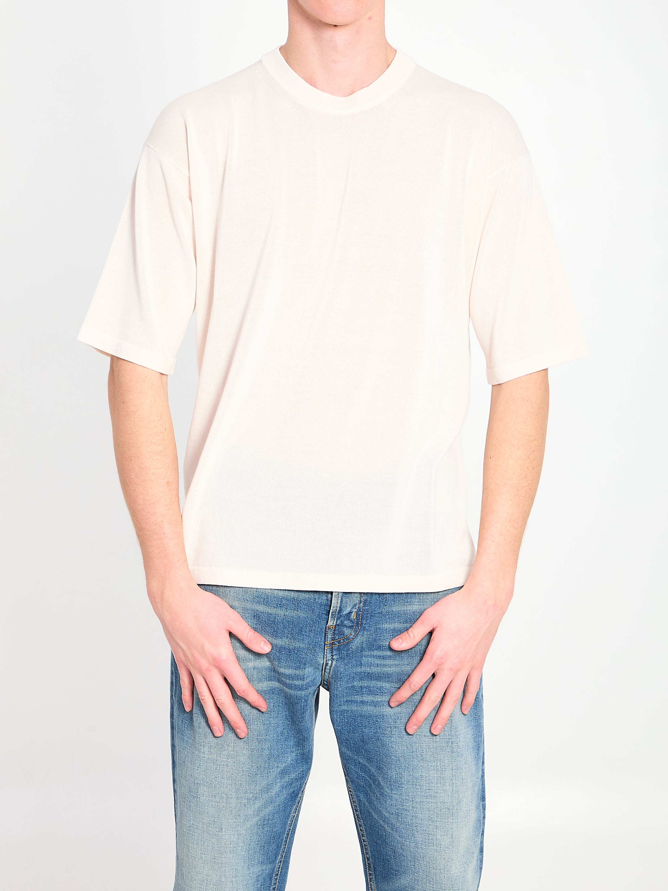 LIGHTWEIGHT ECRU COTTON T-SHIRT. FEATURES A CREW NECK AND SHORT SLEEVES. COMFORTABLE FIT.