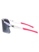 The wraparound construction offers maximum coverage and a secure fit during high-intensity activities, while the modern geometric silhouette makes a bold statement both on and off the field. The translucent frame with contrasting red accents adds a dynamic edge to your athletic wardrobe.
