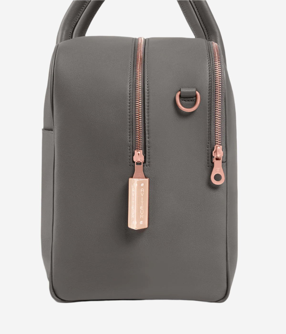 A versatile, lightweight overnight bag in the classic “Boston” shape, made from the finest quality calfskin leather and lined in suede-like washable microfibre. Woven luggage tag, shoulder strap, anodized brass hardware in rose gold, Aviteur prism clasp.