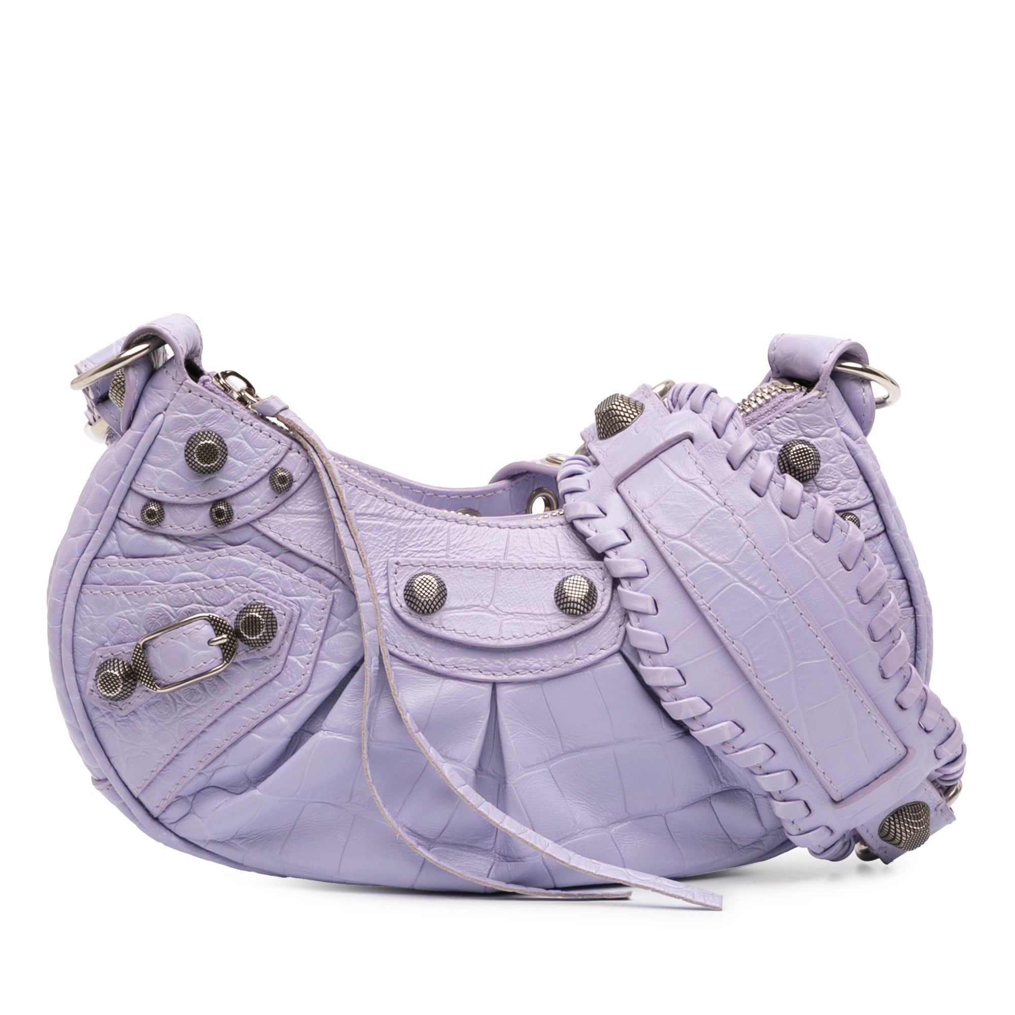 The Le Cagole shoulder bag features an embossed leather body, an adjustable flat leather strap with leather guard, and a top zip closure.