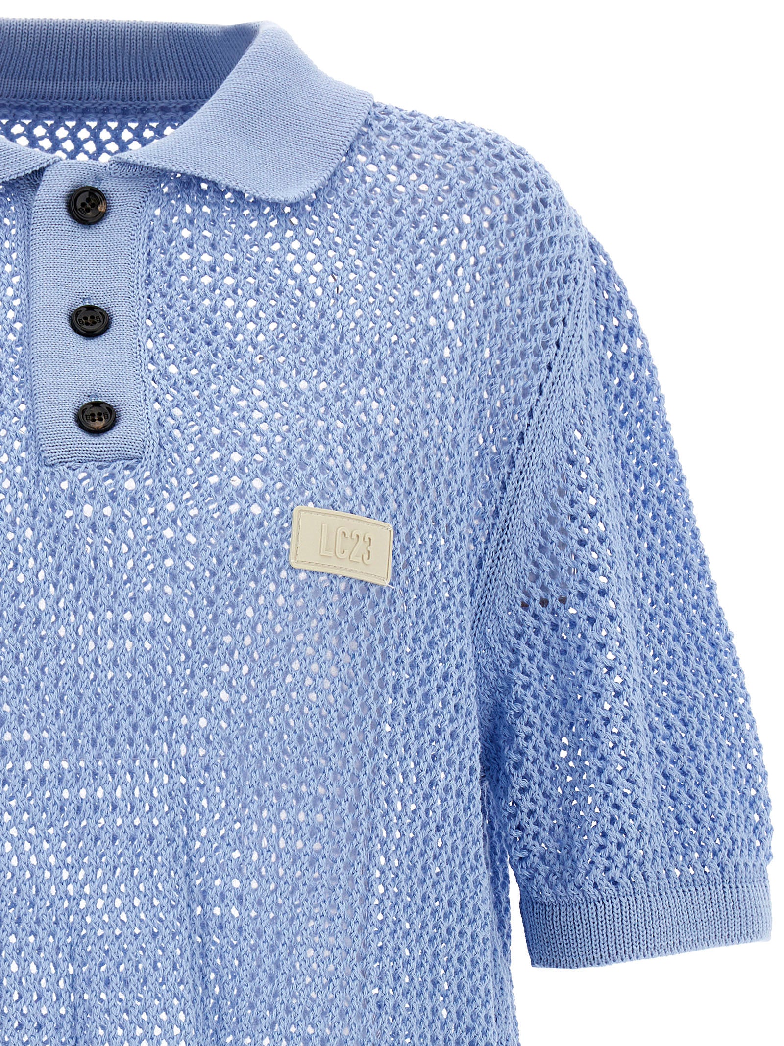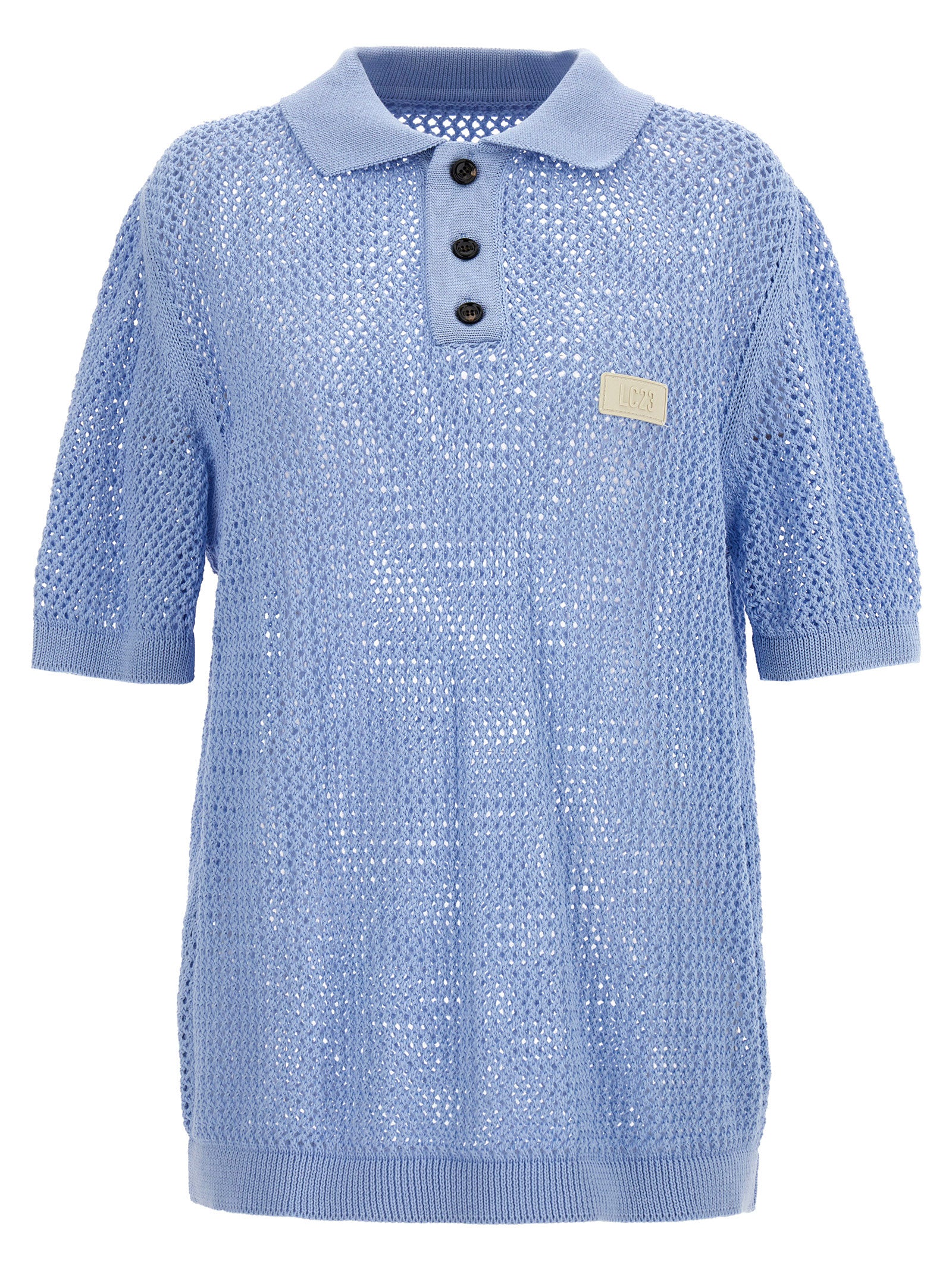 Elevate your warm-weather wardrobe with this stunning crochet polo shirt from LC23. Crafted from breathable cotton in an intricate open-knit crochet texture, this piece combines classic polo styling with contemporary fashion-forward design.