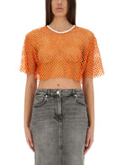 CROPPED CUT 100% POLYESTER MADE IN ITALY THE MODEL IS 180 CM TALL AND WEARS SIZE 38 IT