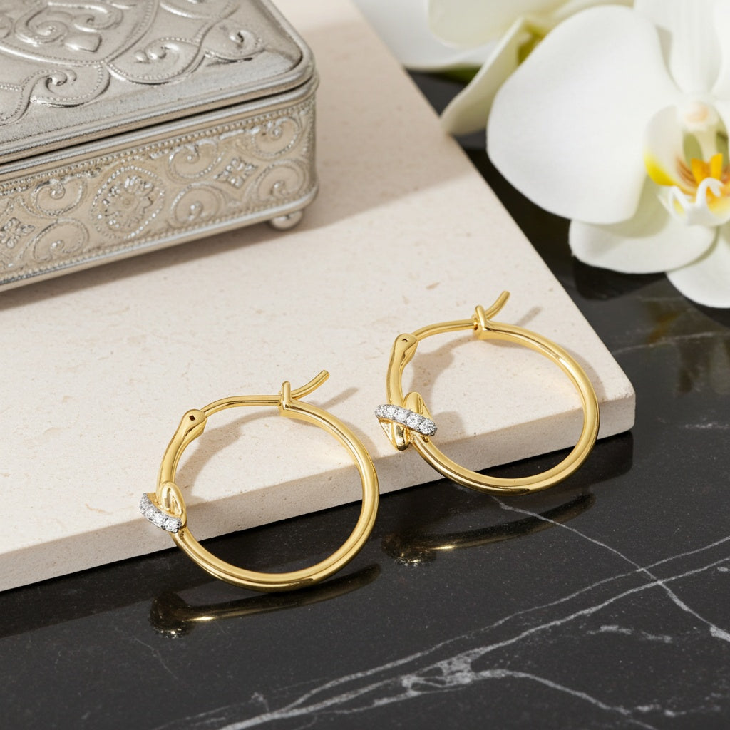 Crossover Motif Diamond Accent Hoop Earrings 14k Gold