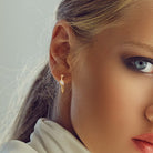 These dainty crossover design hoop earrings are crafted in lustrous 14k gold and feature a central crossover motif embellished with 10 round-cut, prong-set diamonds. Enhanced with a polished finish, these exquisite earrings are secured with hinged post back closures. A classy choice for gifting your loved ones.