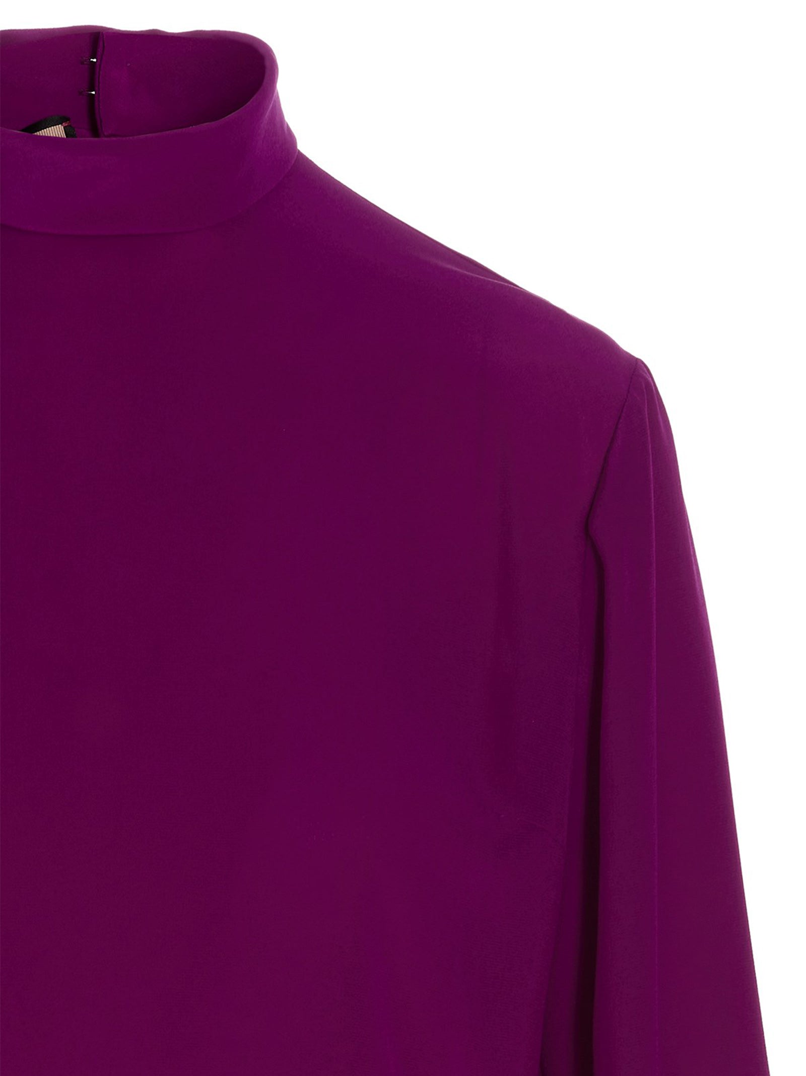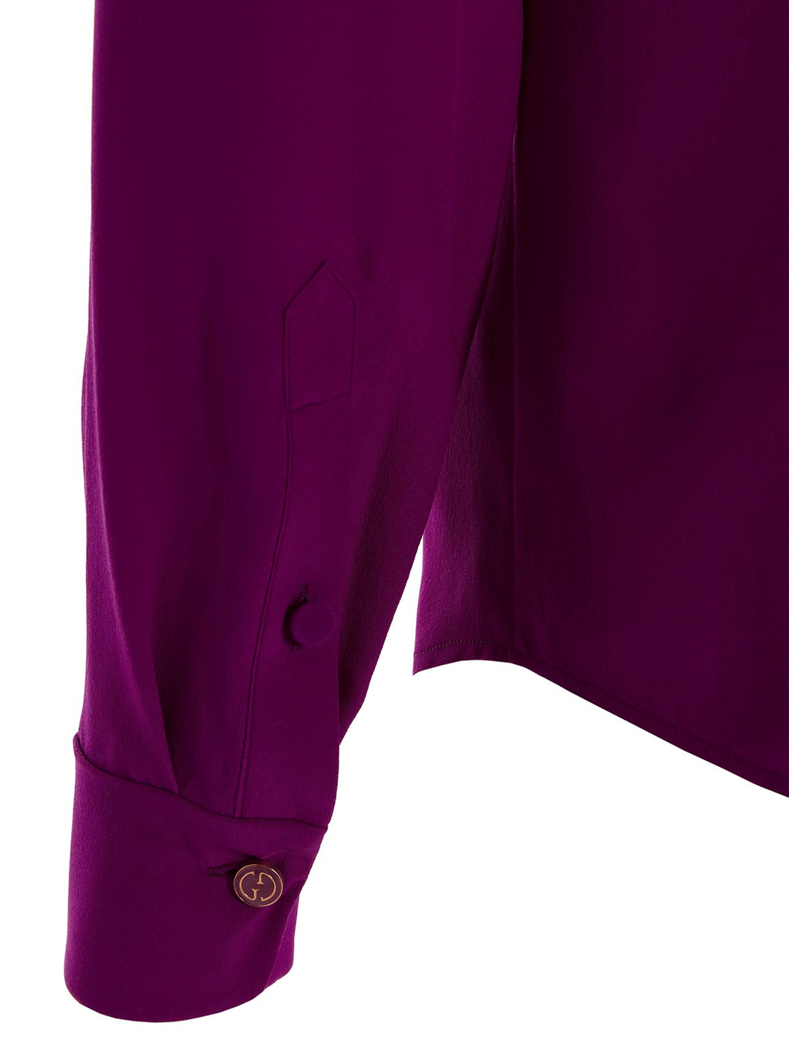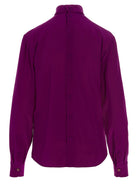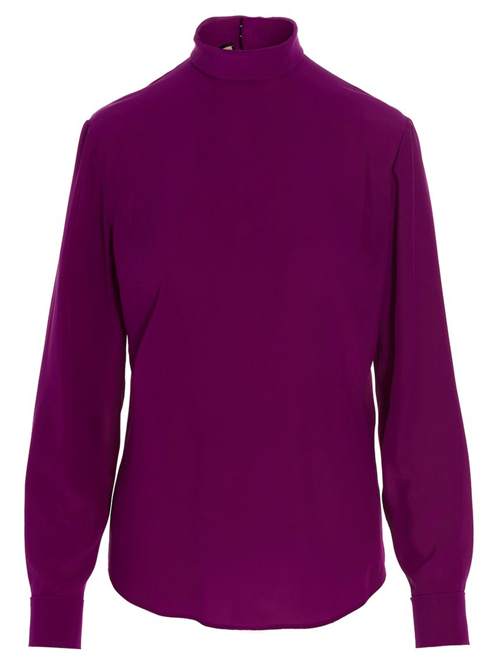 Elevate your wardrobe with this exquisite Gucci crêpe de chine silk shirt in a stunning magenta hue. Crafted from luxurious silk, this refined piece features a sophisticated turtleneck collar and elegant long sleeves that exude timeless elegance.