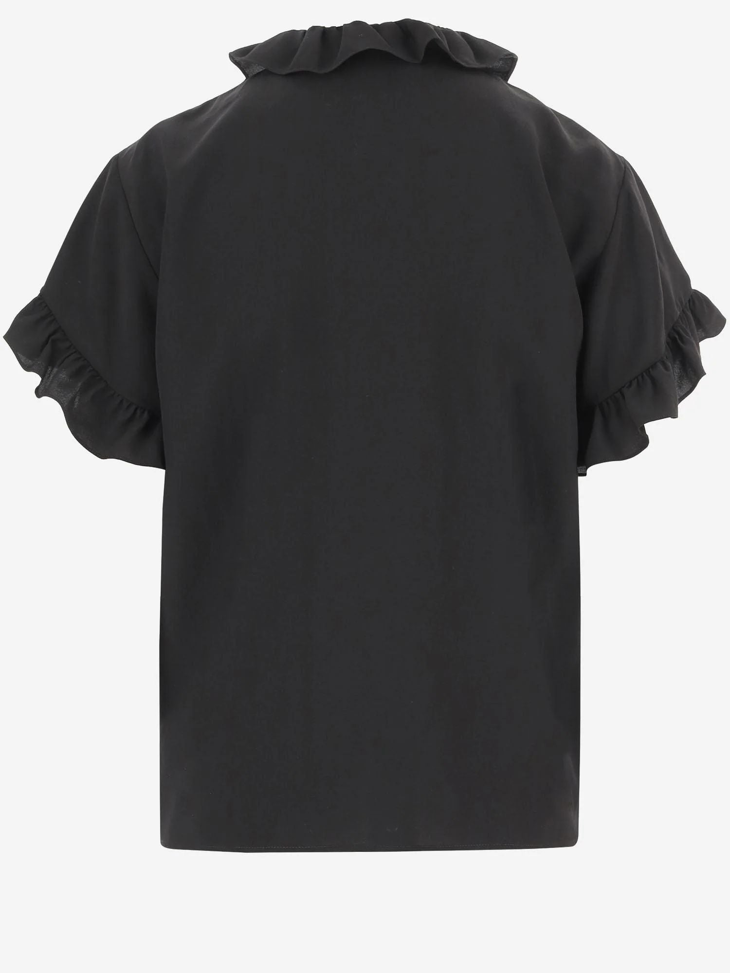 BLACK ORGANIC SILK CRêPE DE CHINE TOP. FEATURES A RUFFLED CREW NECK, HALF-LENGTH BUTTON CLOSURE, RUFFLED SHORT SLEEVES. RELAXED FIT.