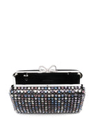 Make a dazzling statement with this Crystal Embellished Clutch from Self-Portrait. This luxurious evening bag features rows of shimmering crystals meticulously arranged on a silk and nylon base, creating an eye-catching accessory that captures the light from every angle.