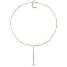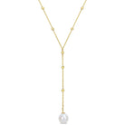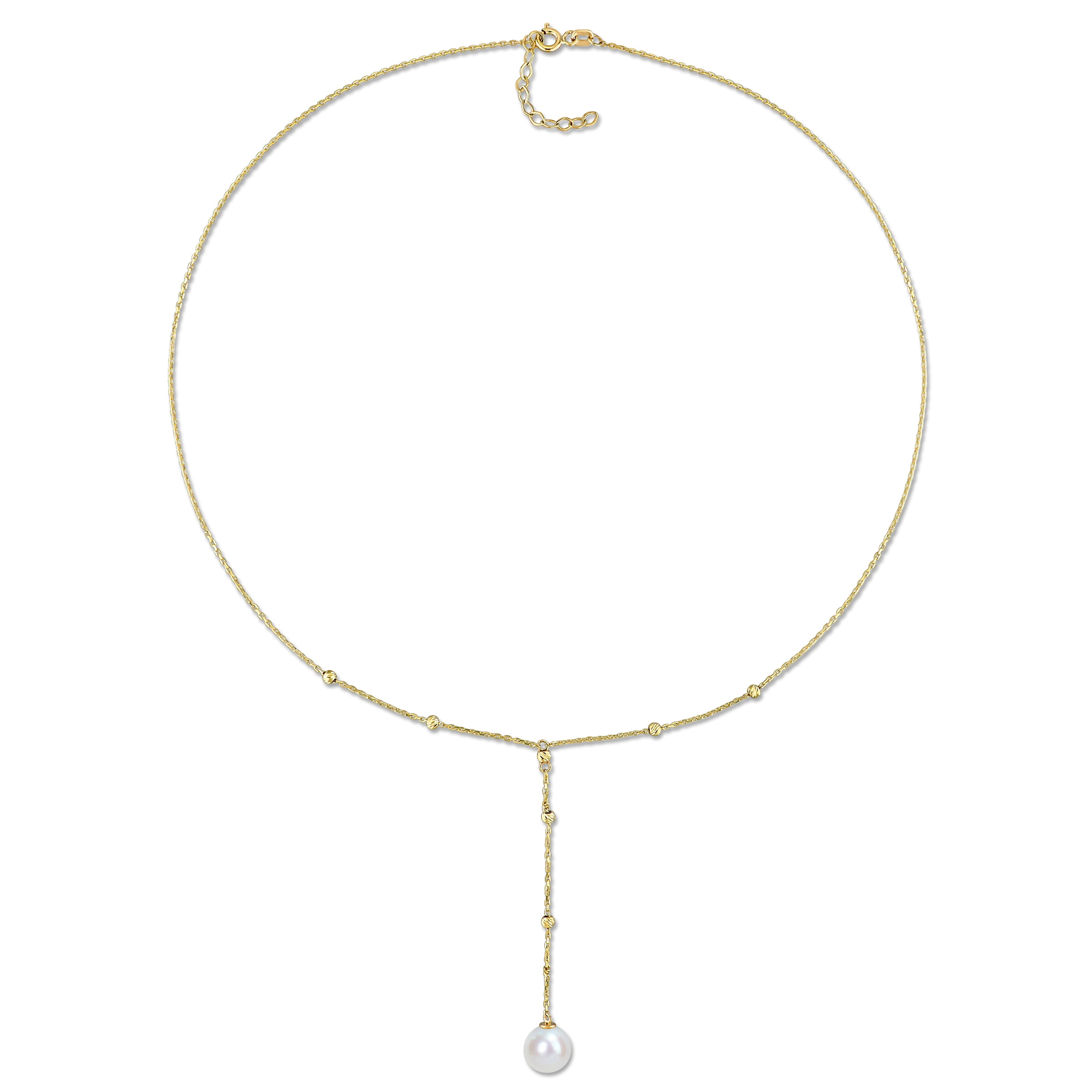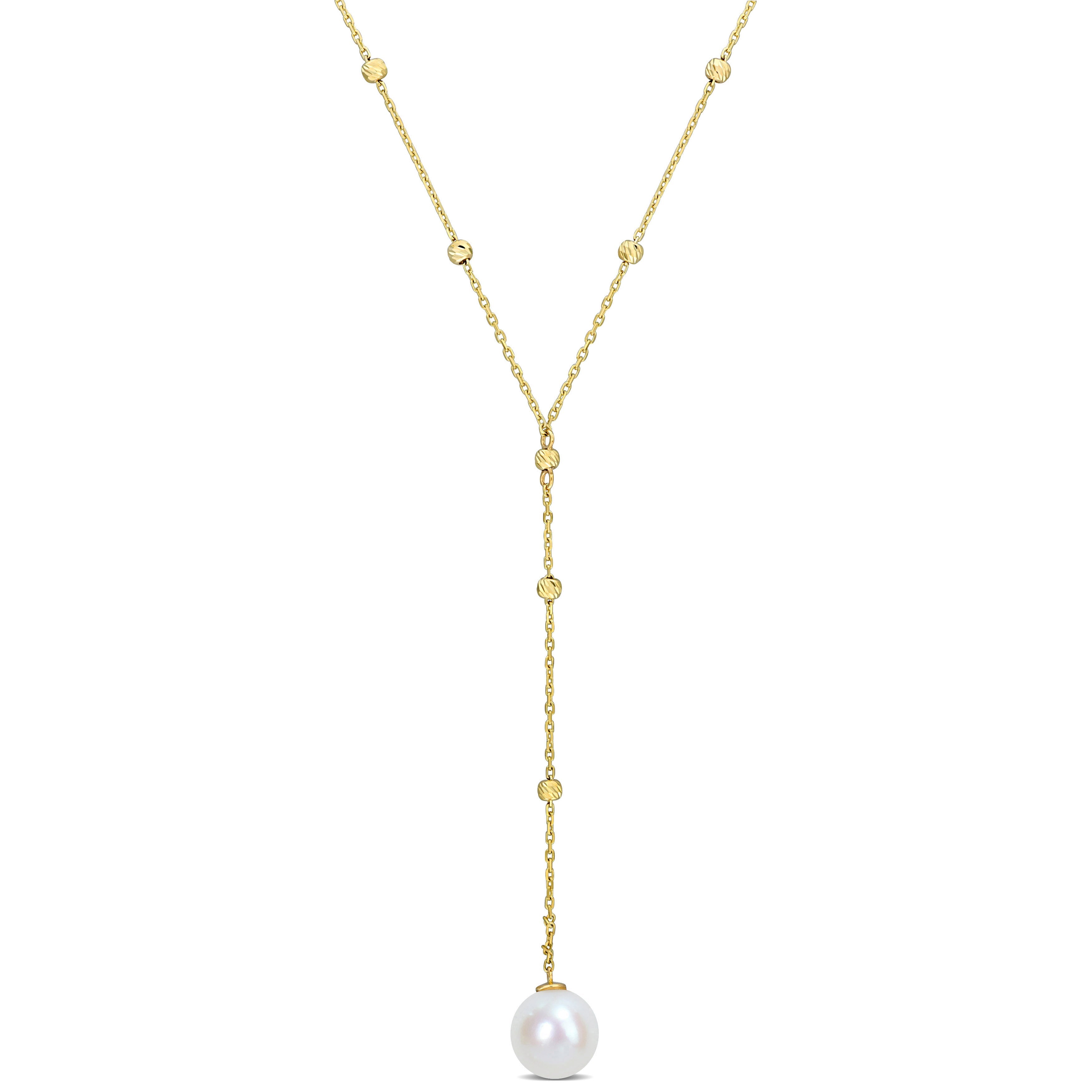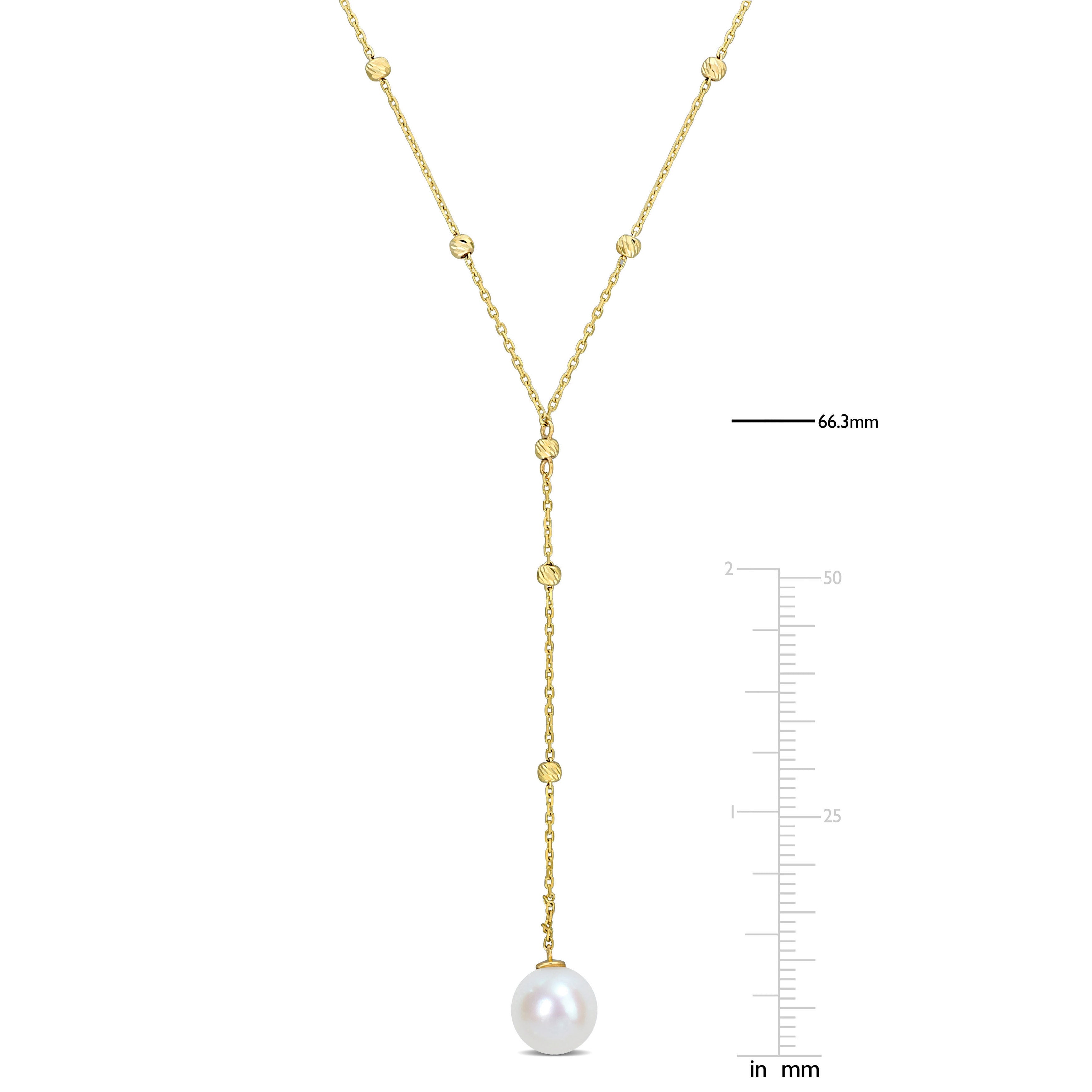 Cultured Freshwater Pearl Ball Station Lariat Necklace in 10k Yellow Gold