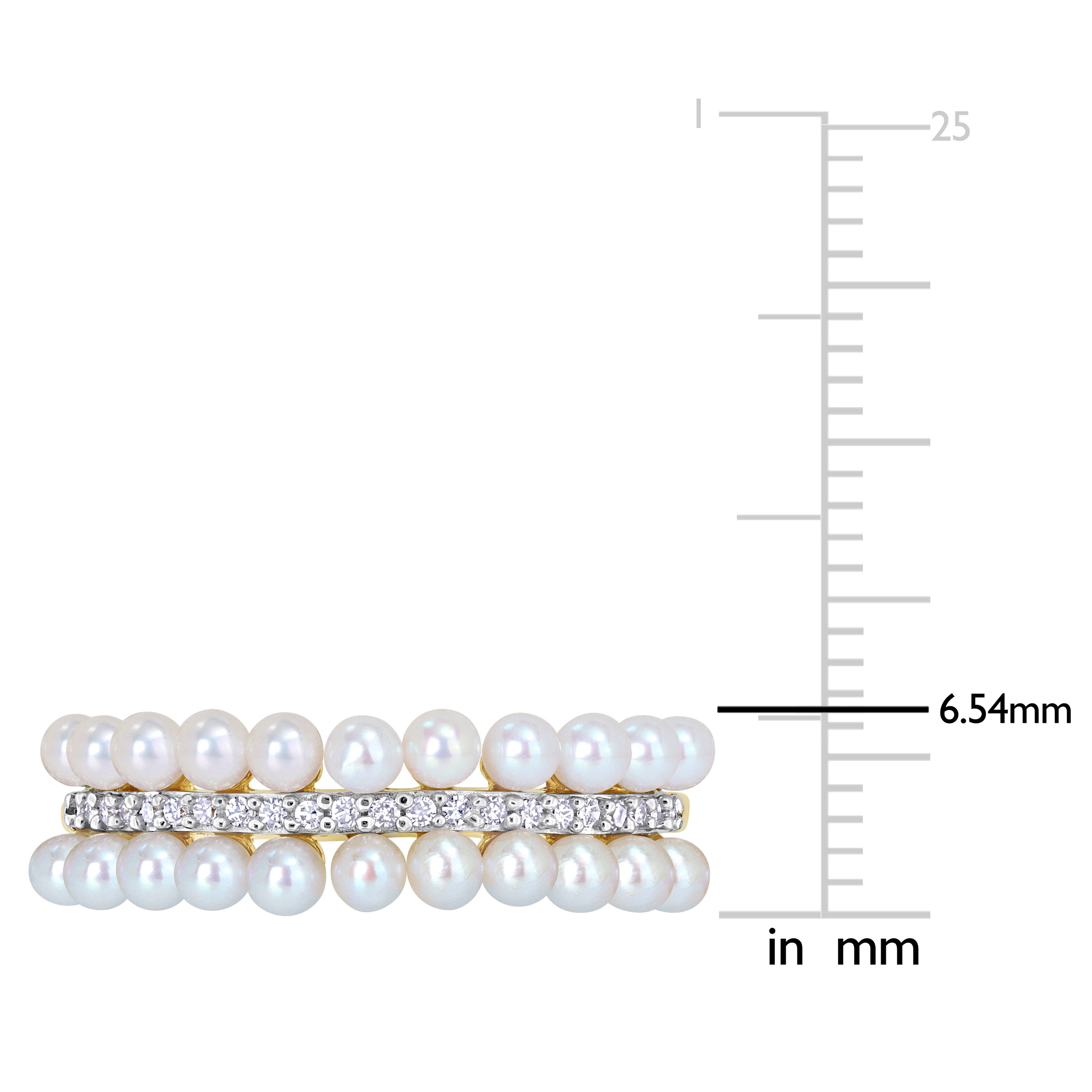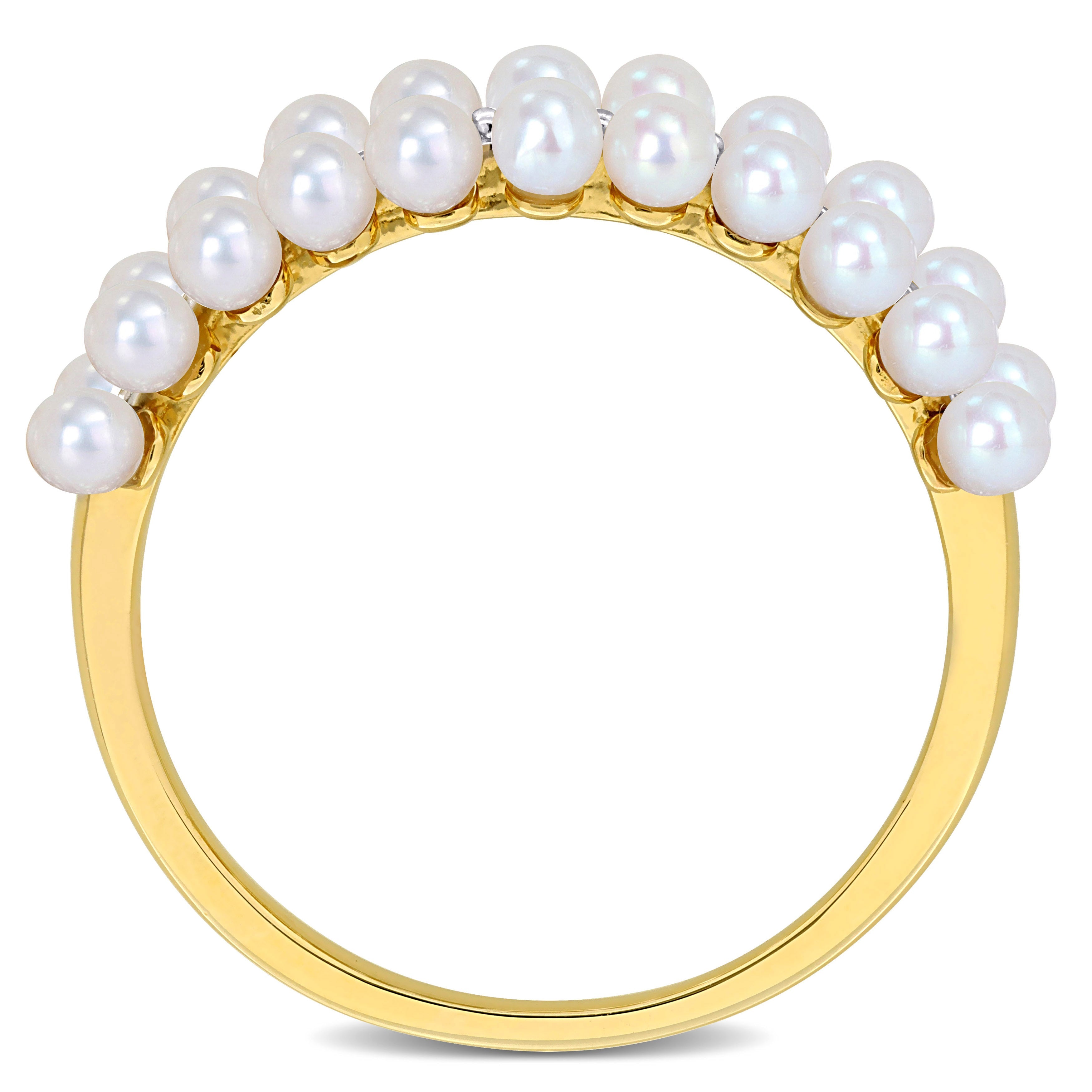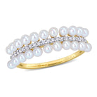 Cultured Freshwater Pearl & Diamond Double-Row Ring in 14k Yellow Gold