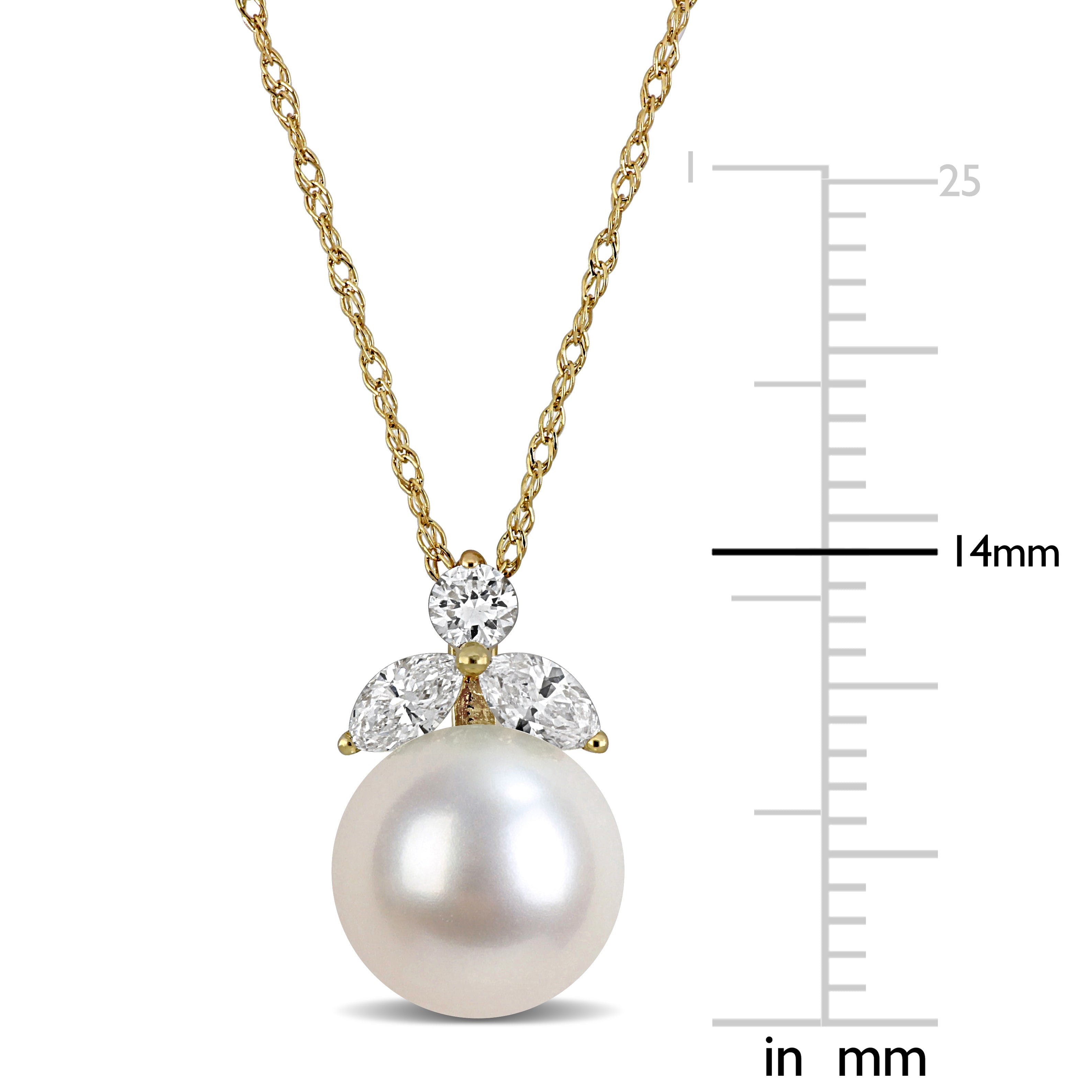 Cultured Freshwater Pearl & Diamond Solitaire Pendant Necklace in 14k Yellow Gold