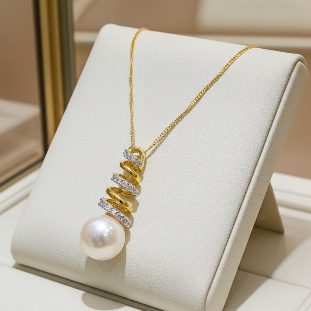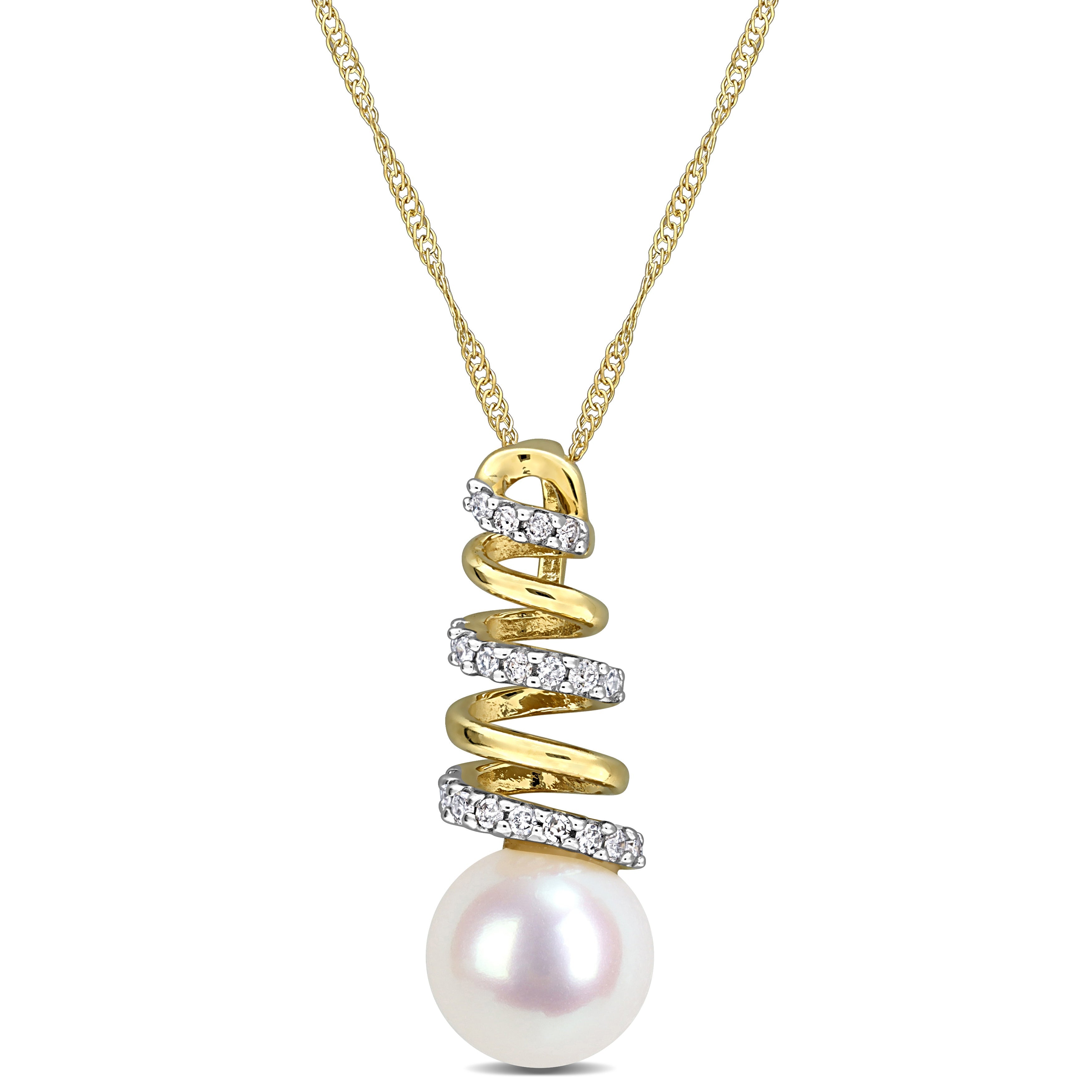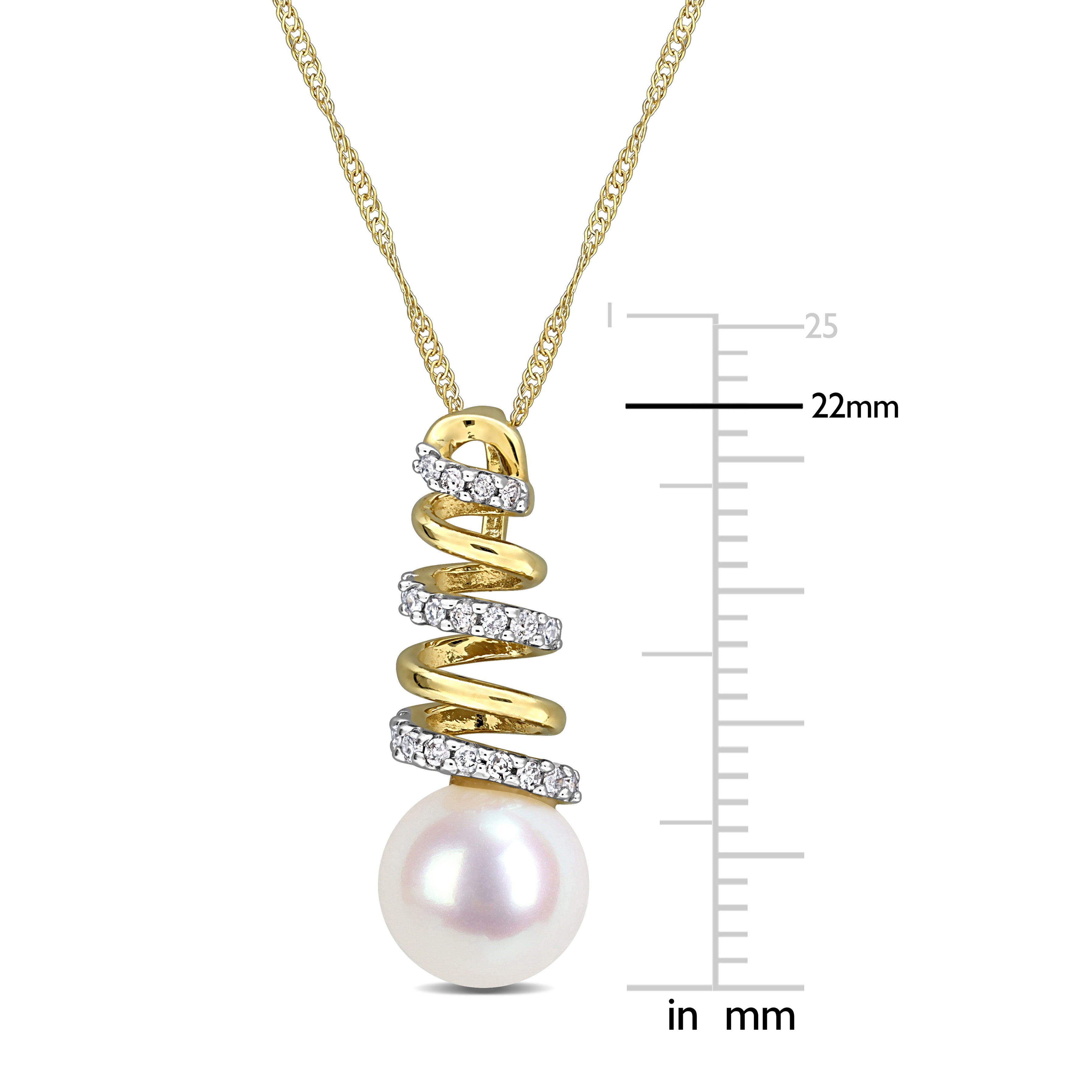 Modern elegance takes center stage with this 17-inch pendant necklace, featuring a cultured freshwater pearl wrapped in a dazzling diamond-accented twist. Crafted in 10K yellow gold, the sculptural spiral design adds movement and brilliance, making it a stunning statement for both day and evening wear.