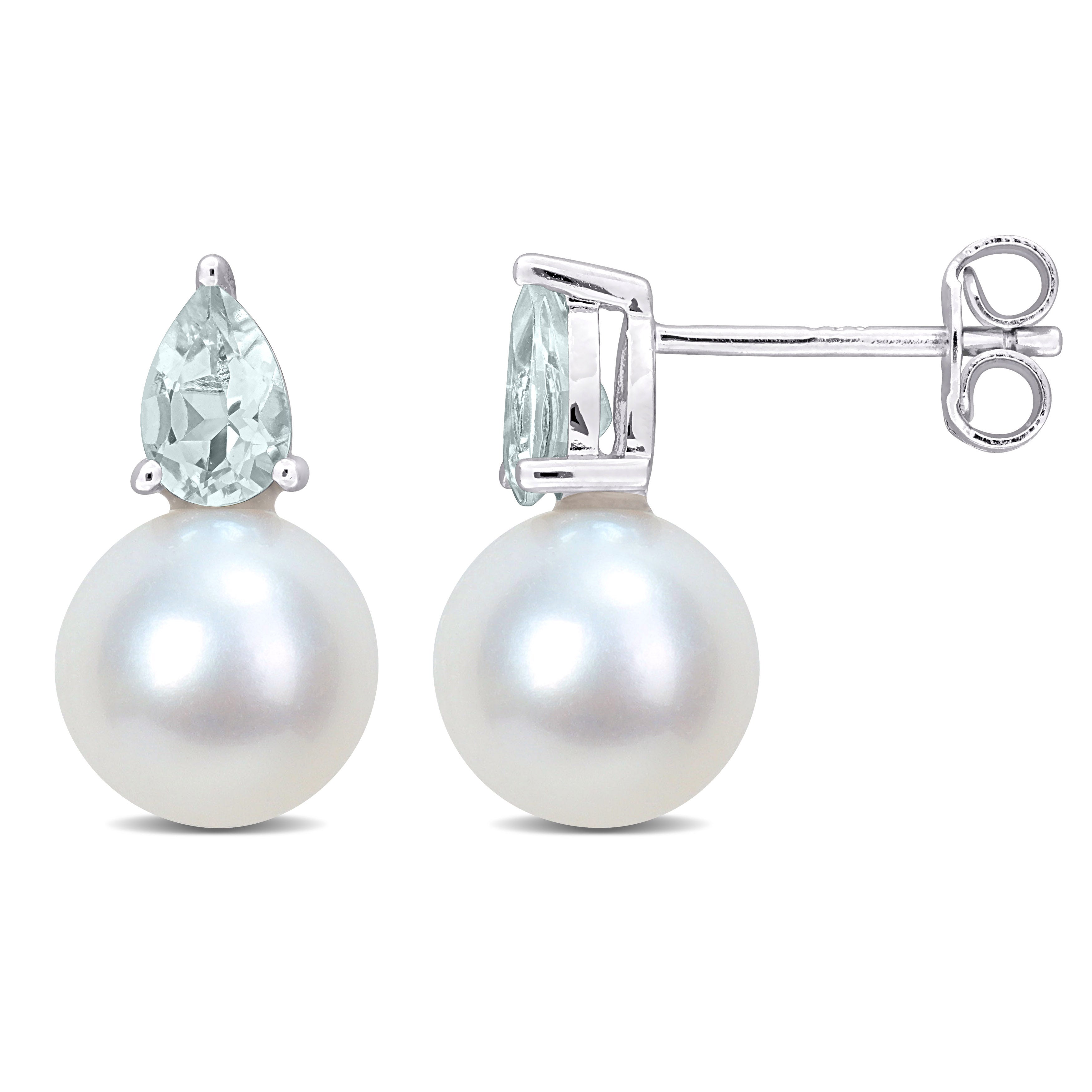 If you adore classic accessories, then these Solitaire Stud Earrings are for you. Crafted in luminous sterling silver, these elegant earrings feature round-shaped cultured freshwater pearls and pear-cut prong-set gemstones. Polished to brilliance, these splendid earrings are comfortably secured with post butterfly closures.