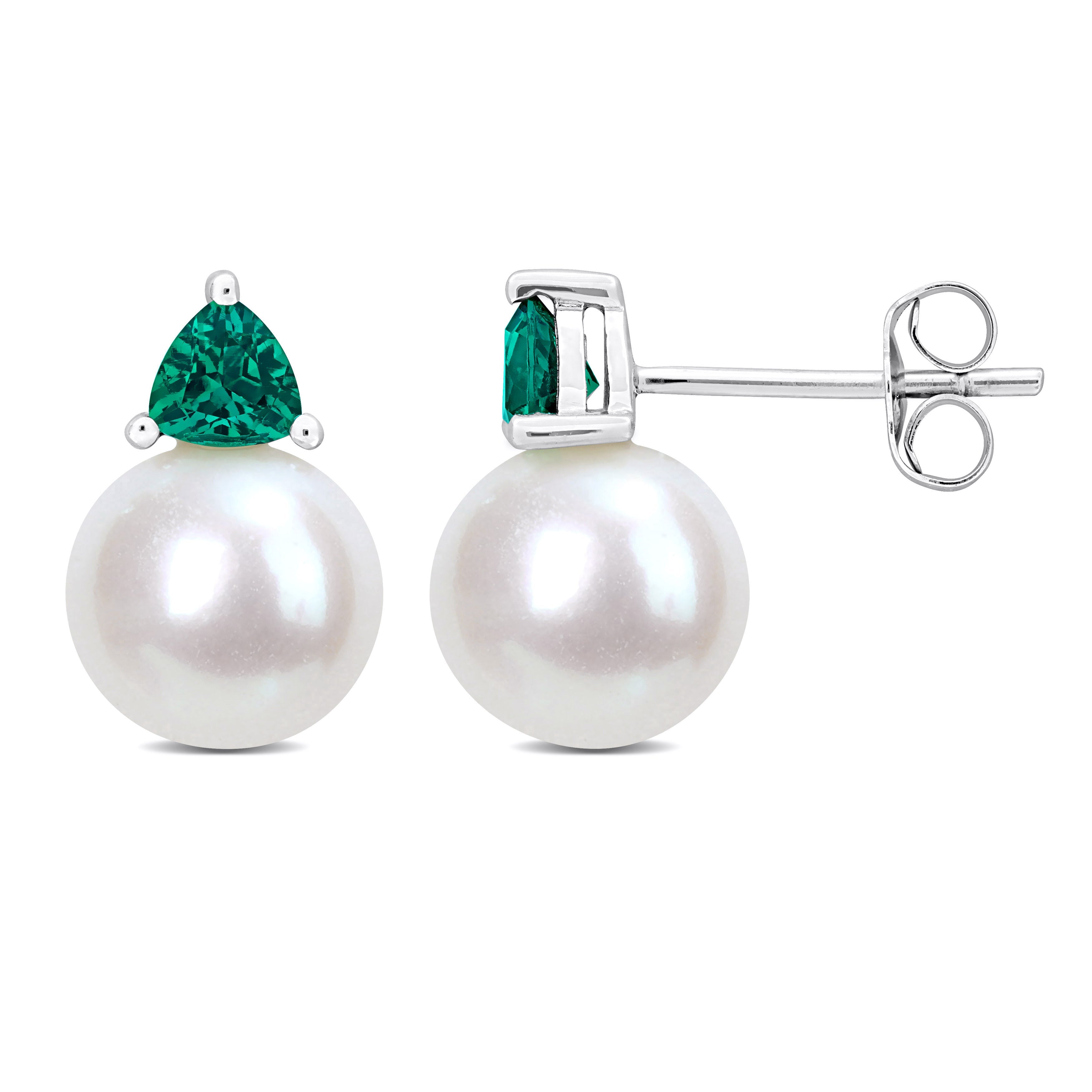 Cultured Freshwater Pearl Gemstone Birthstone Stud Earrings in 10k White Gold