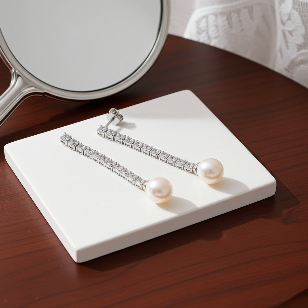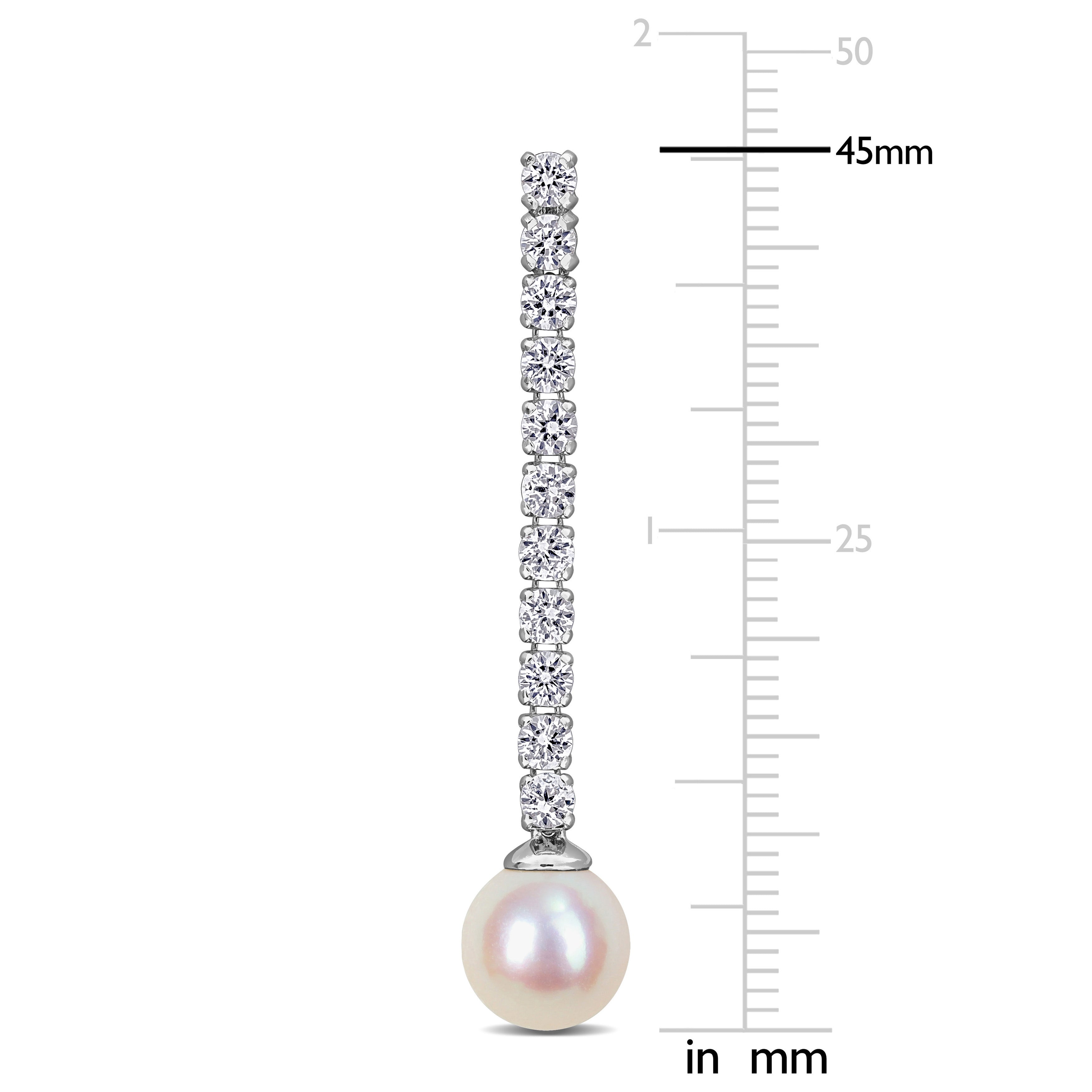 Cultured Freshwater Pearl & Lab-Created White Sapphire Drop Dangle Earrings in Sterling Silver