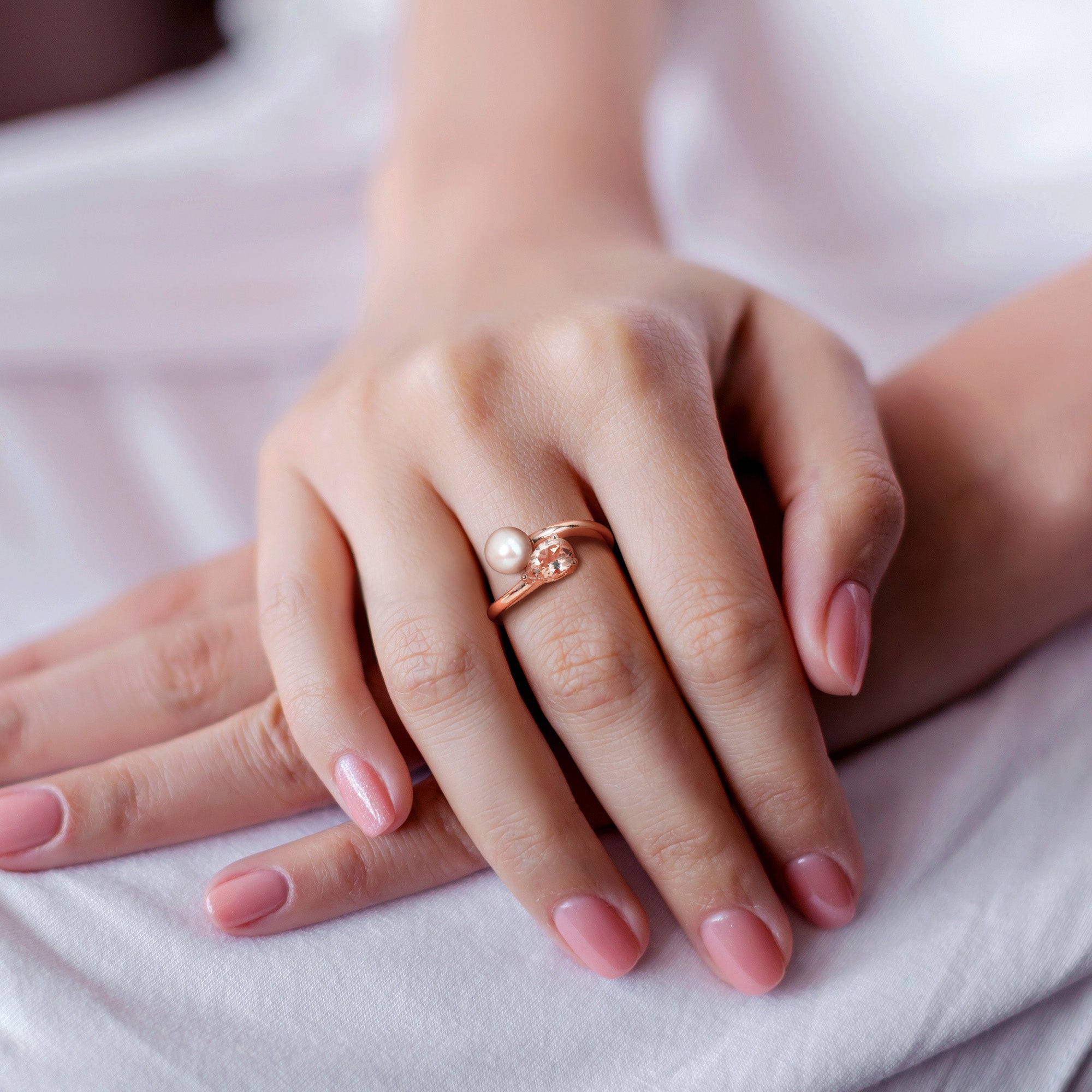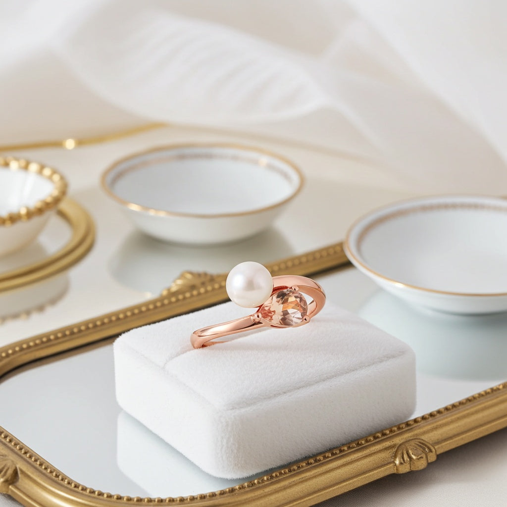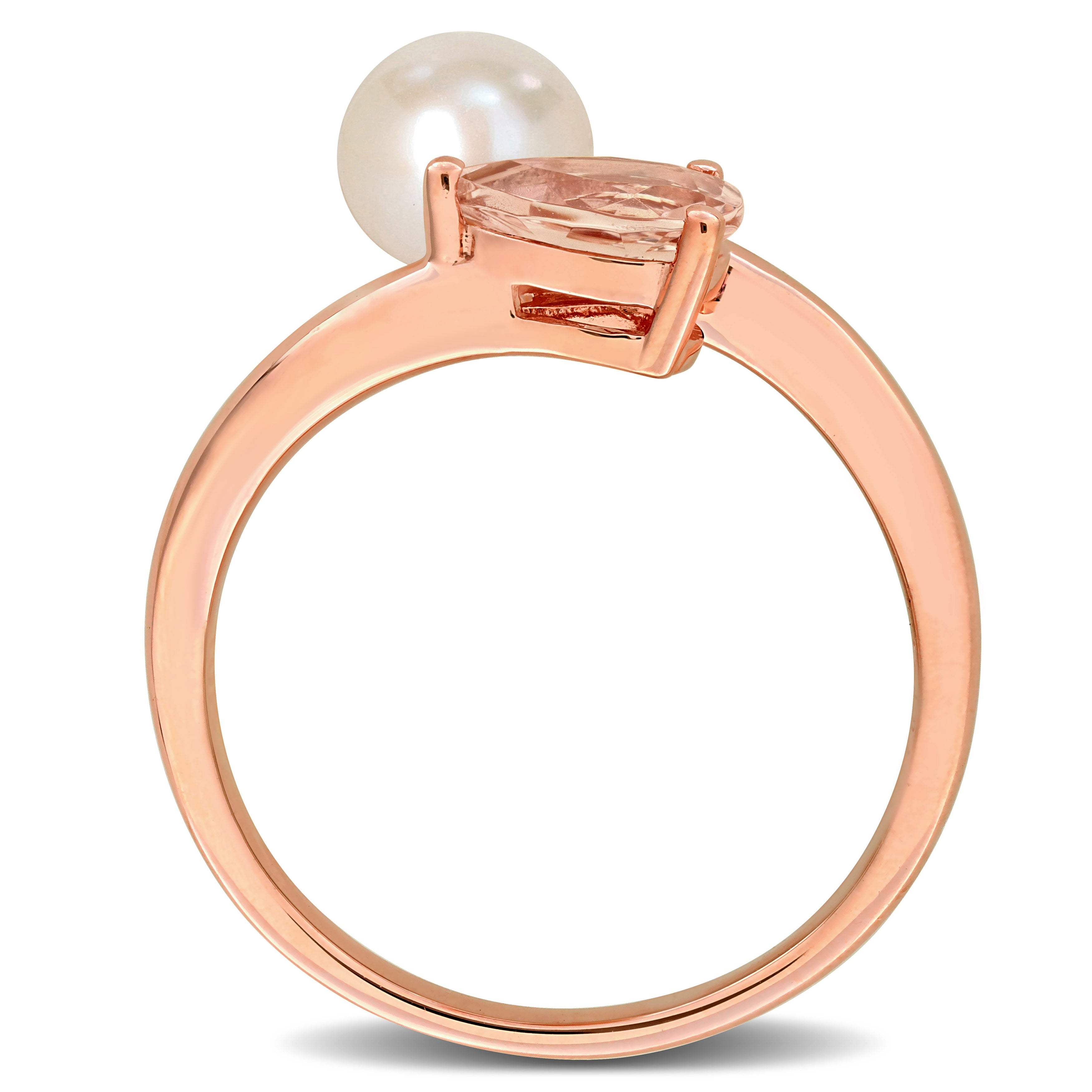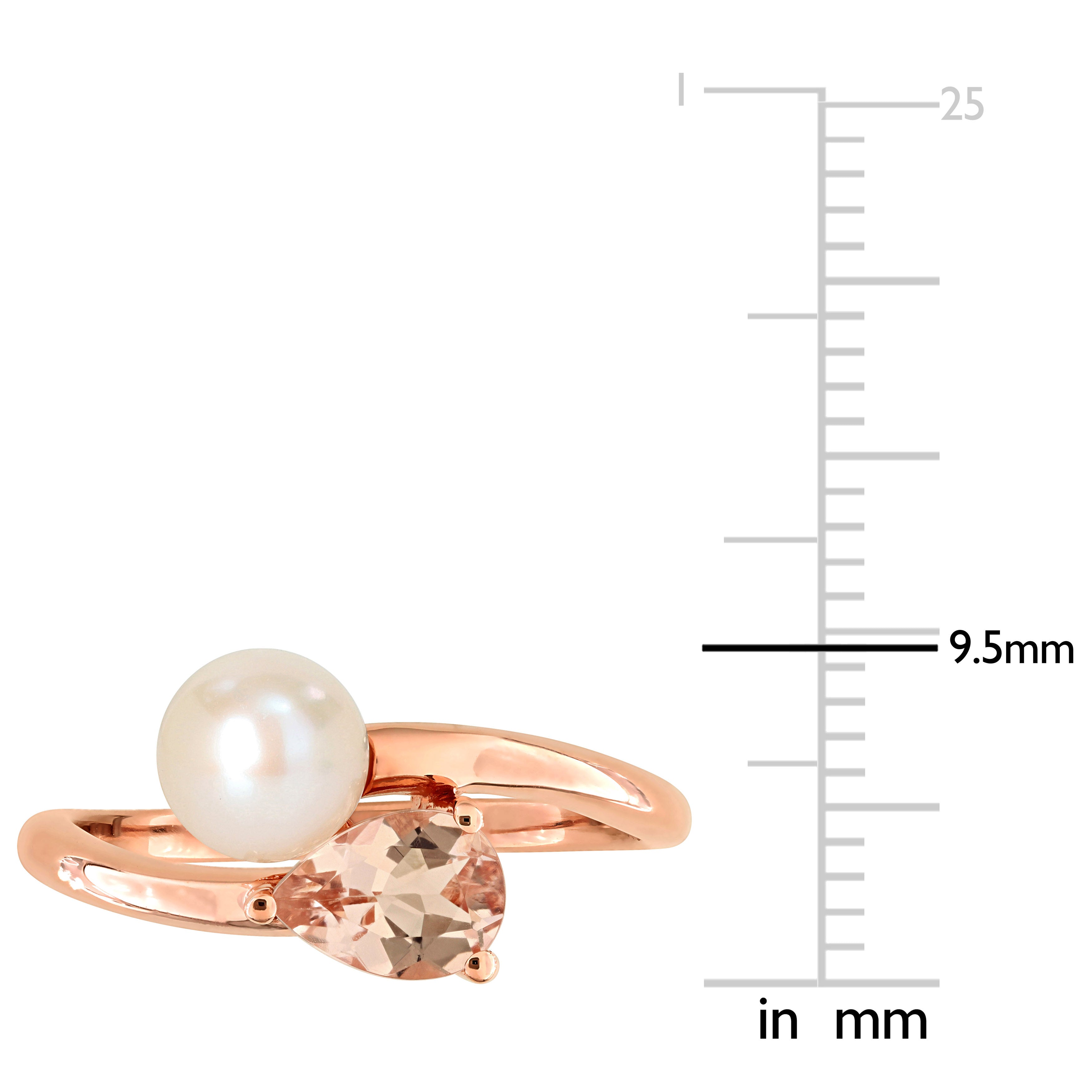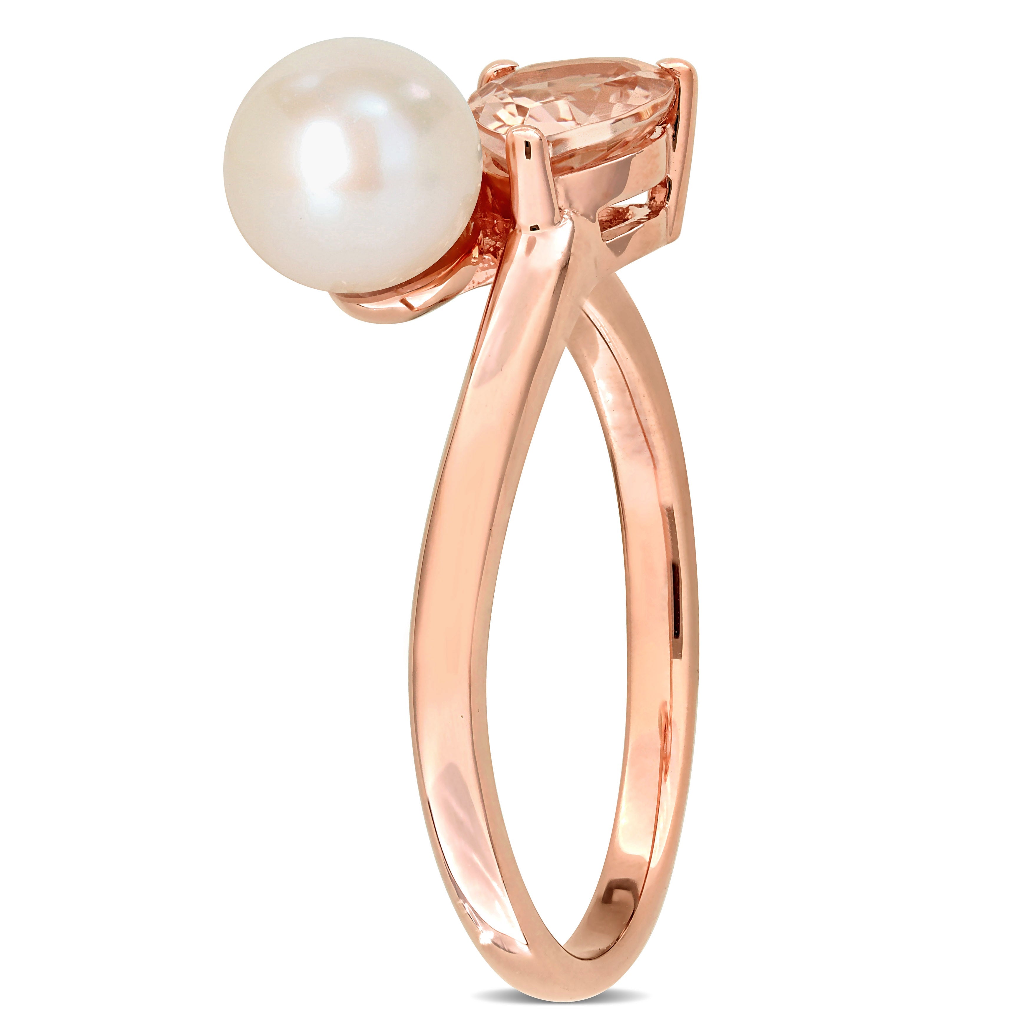 Cultured Freshwater Pearl & Morganite 2-Stone Ring in 10k Rose Gold