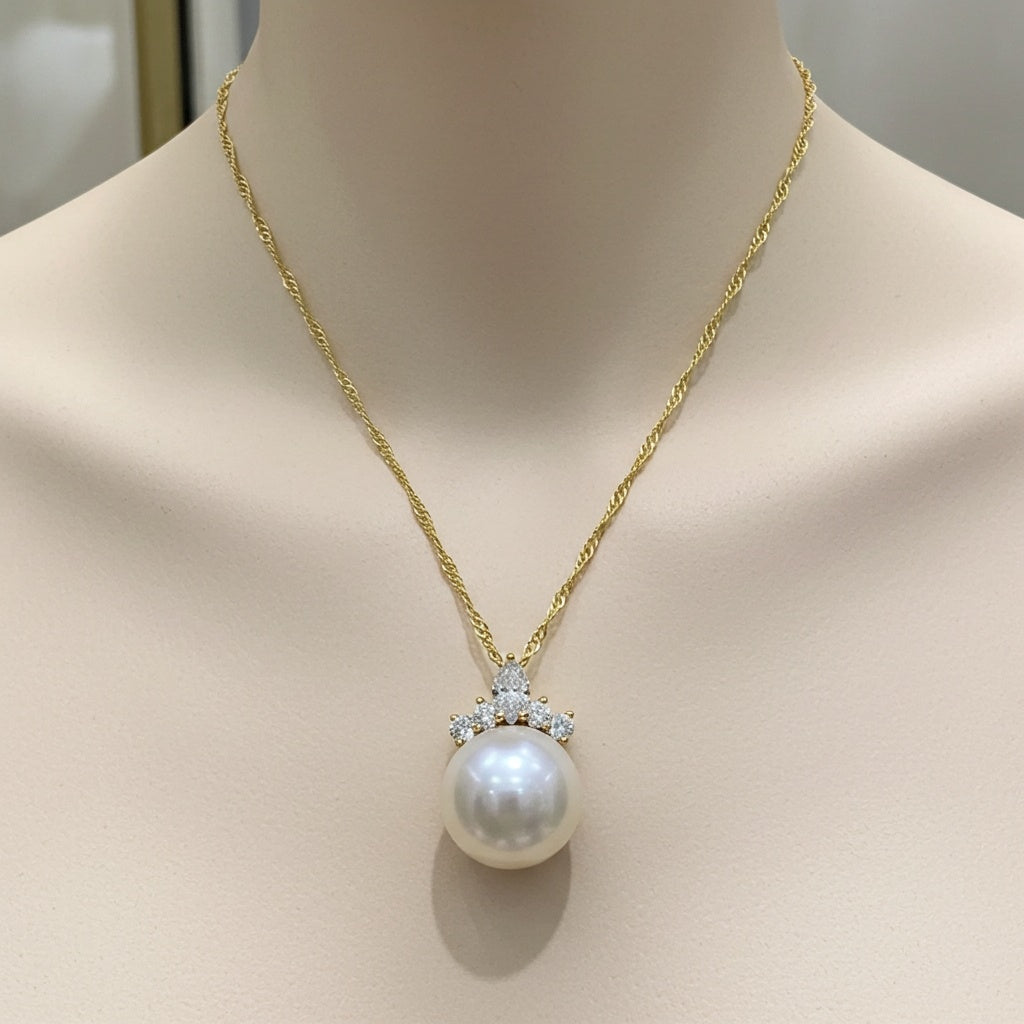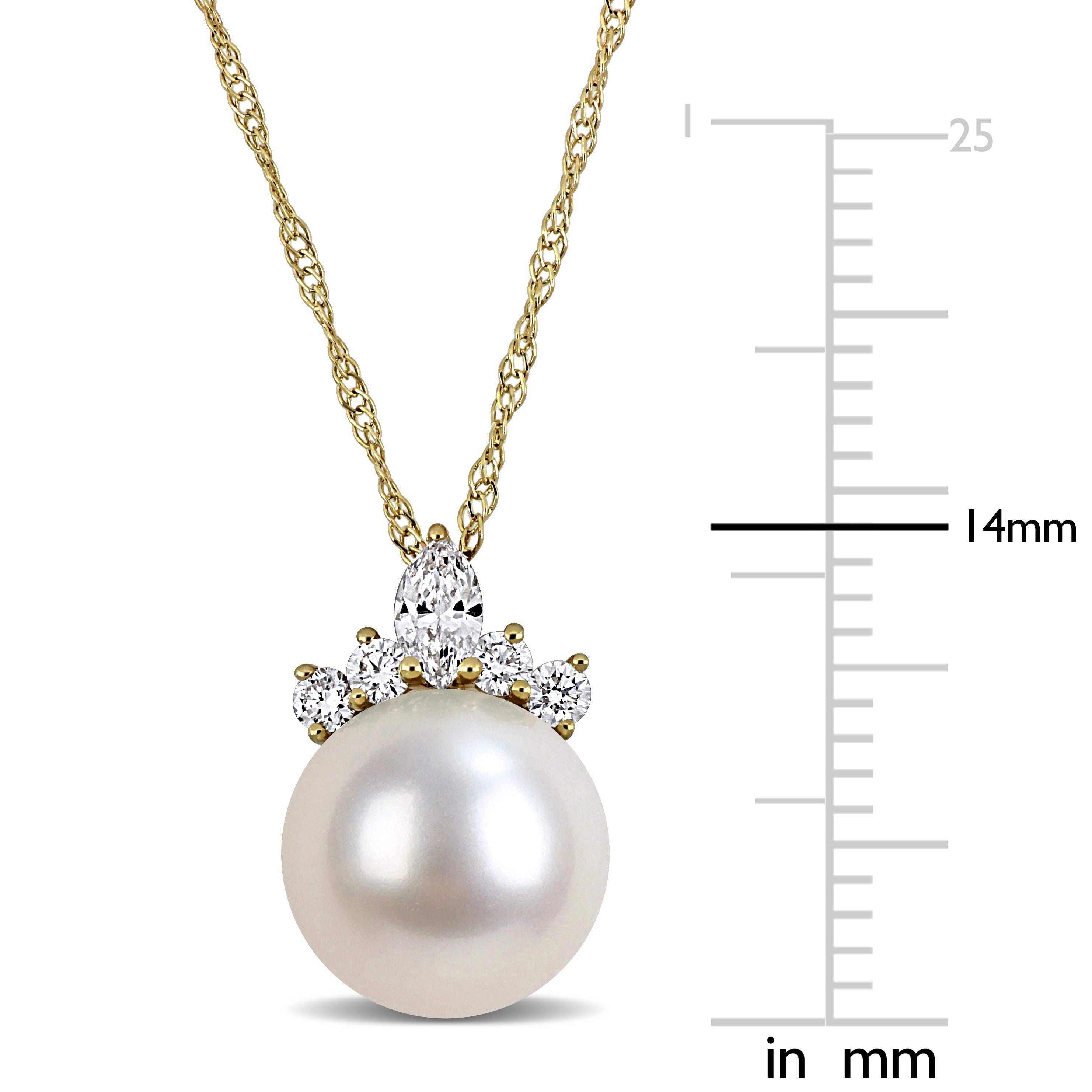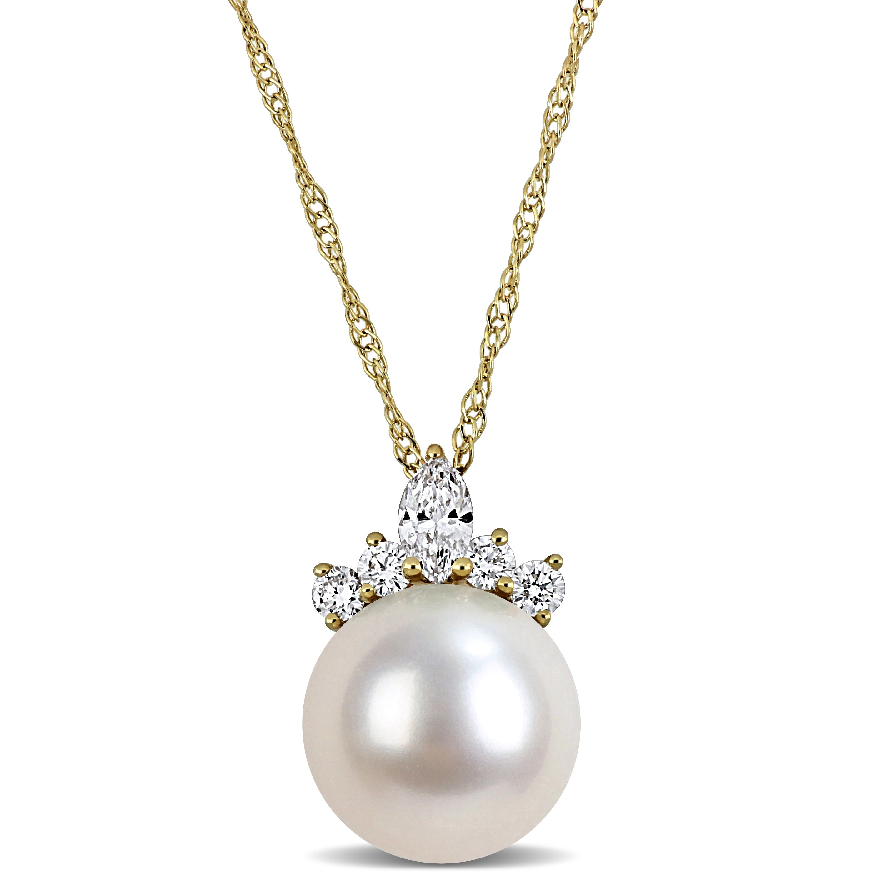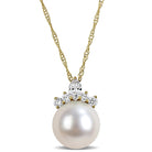 Cultured Freshwater Pearl & Multi-Shape Diamond Pendant Necklace in 14k Yellow Gold