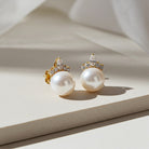 Cultured Freshwater Pearl & Multi-Shape Diamond Stud Earrings in 14k Yellow Gold