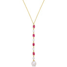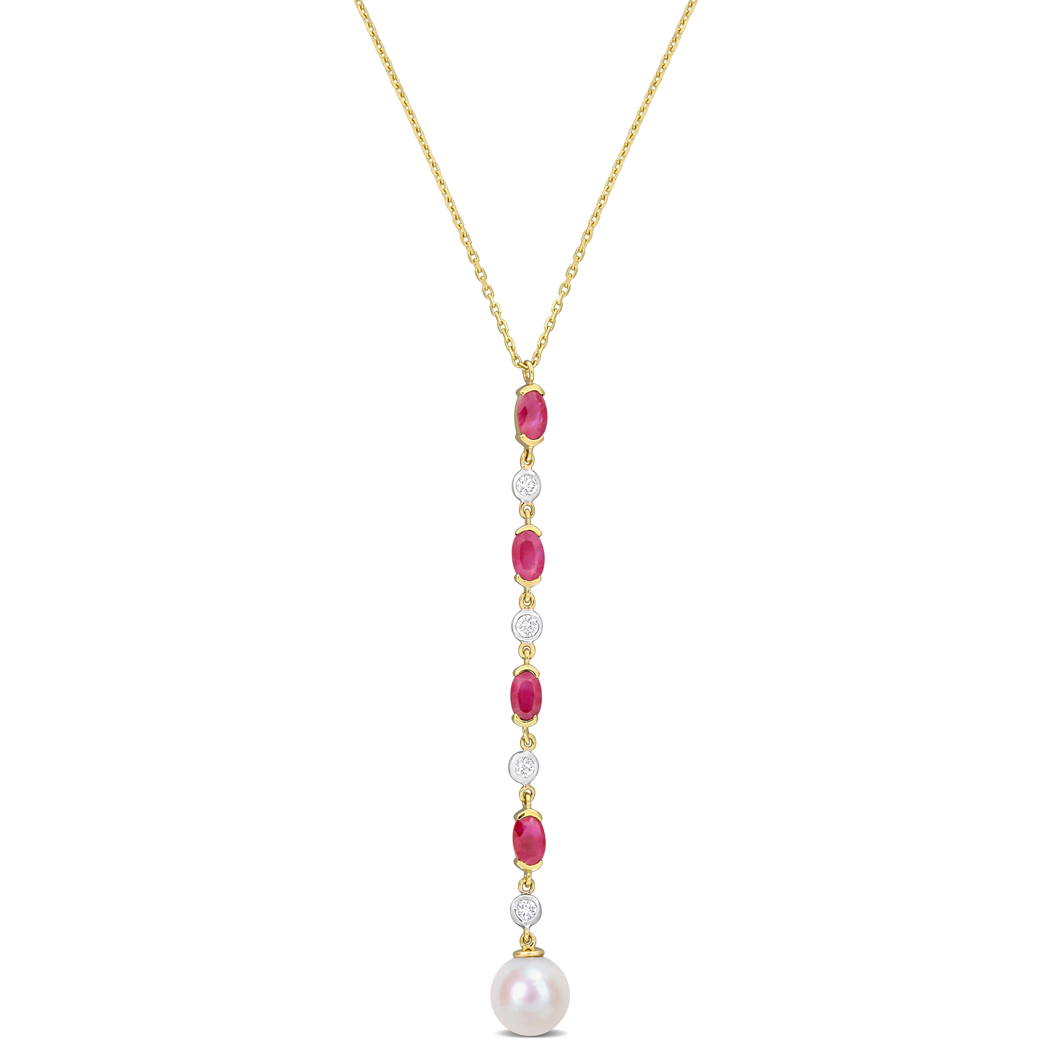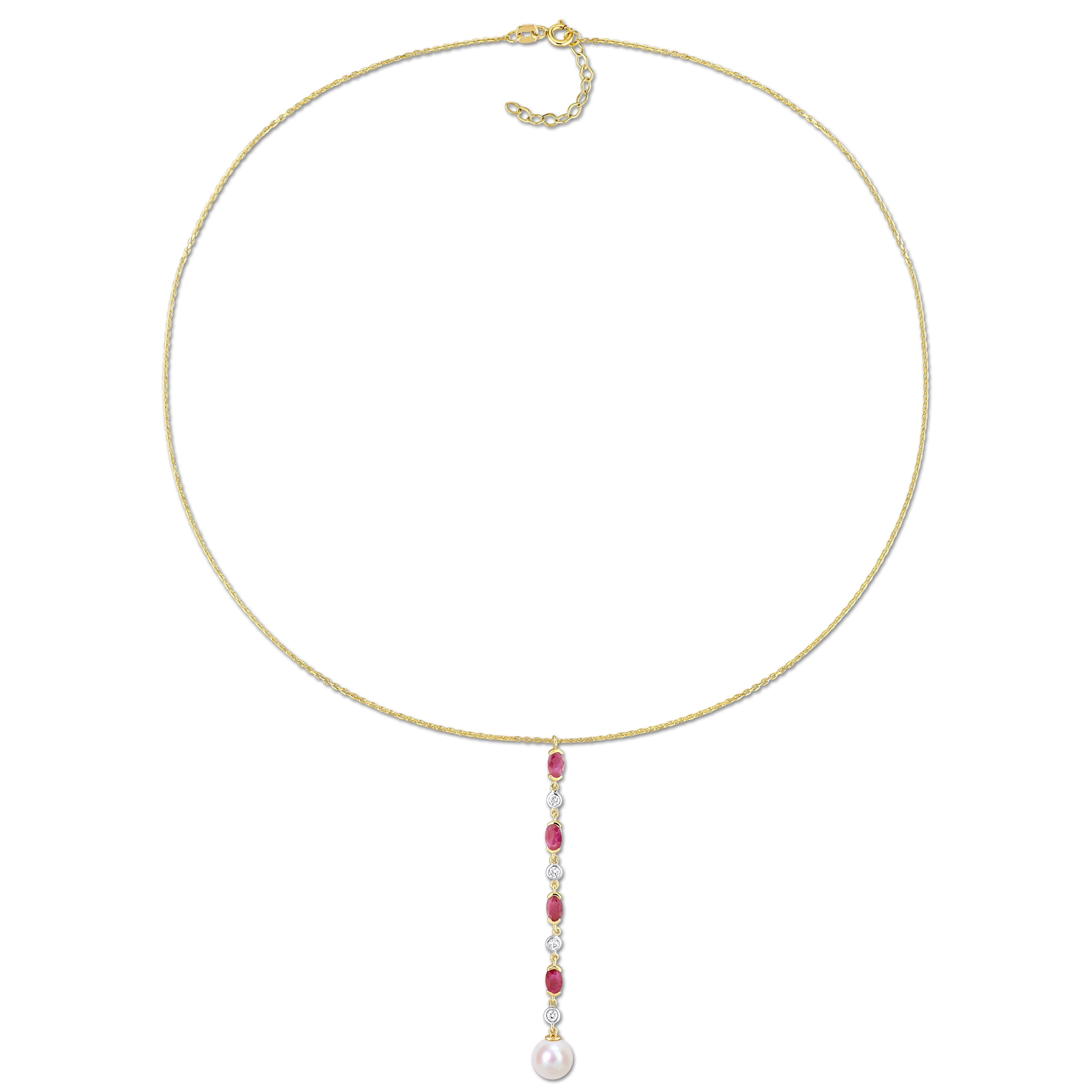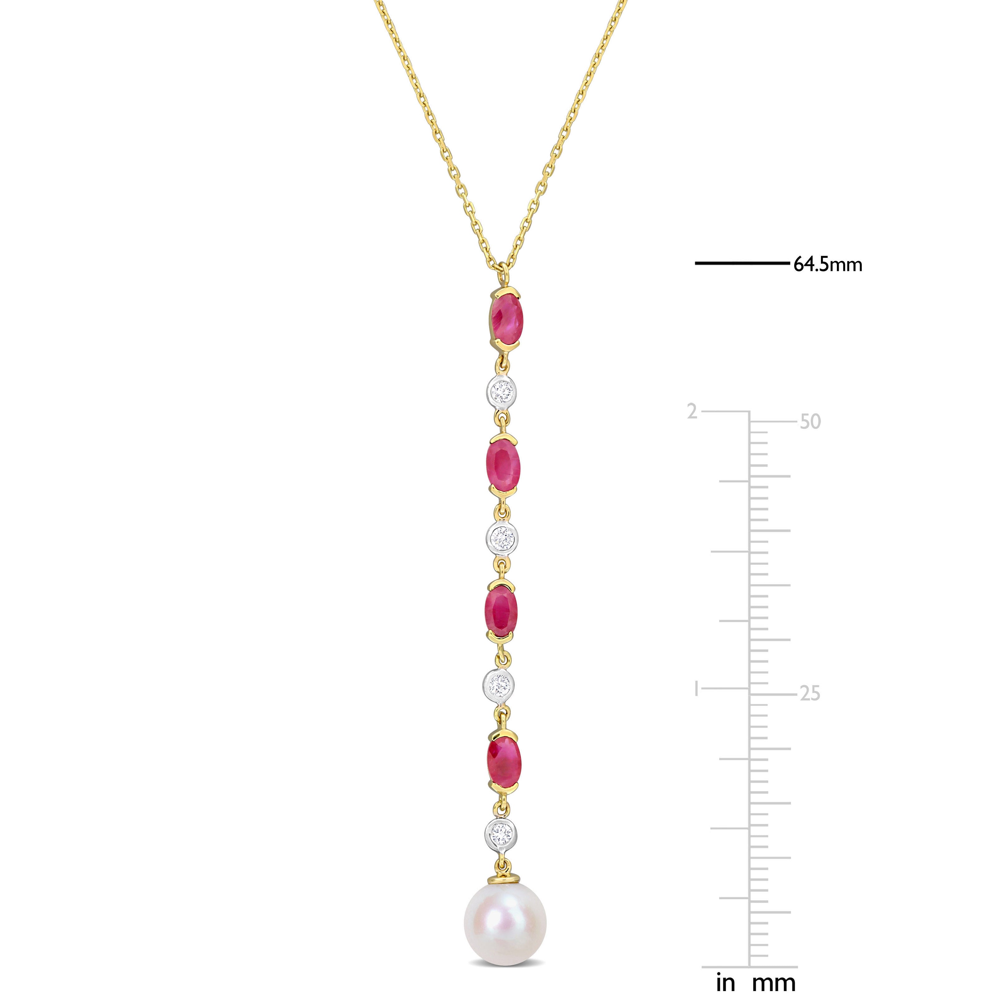 Cultured Freshwater Pearl Ruby & 1/5ct TW Diamond Drop Lariat Necklace in 10k Yellow Gold