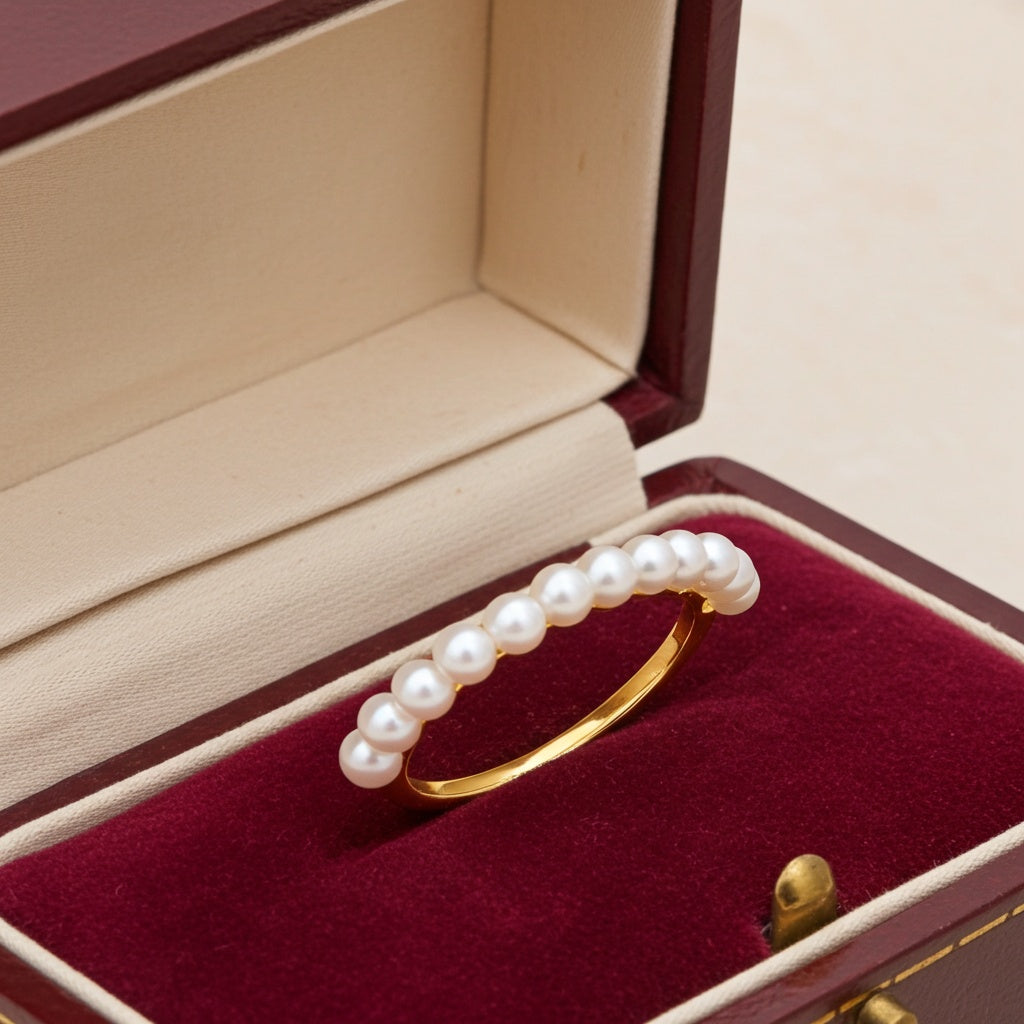 Cultured Freshwater Pearl Single Row Ring in 14k Yellow Gold