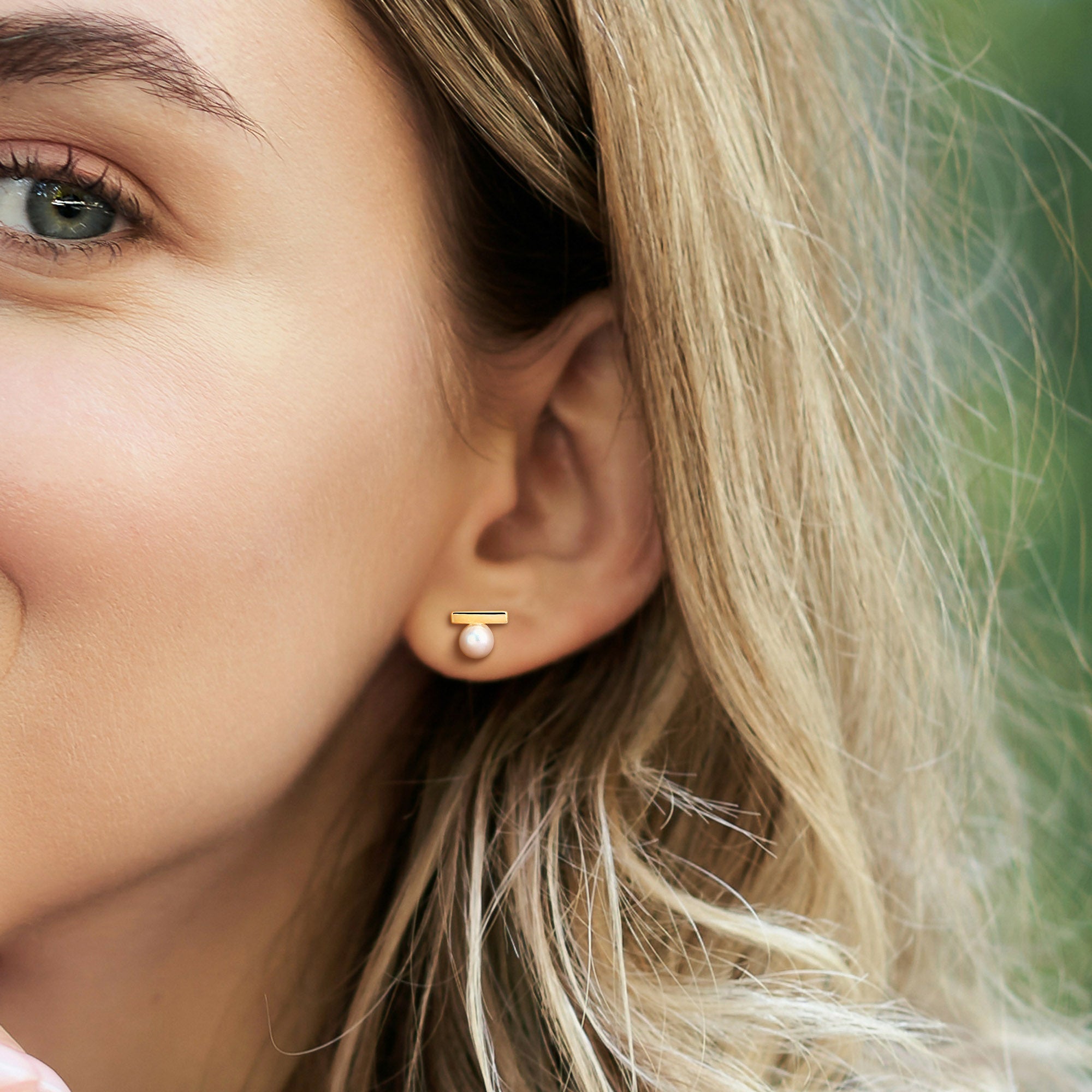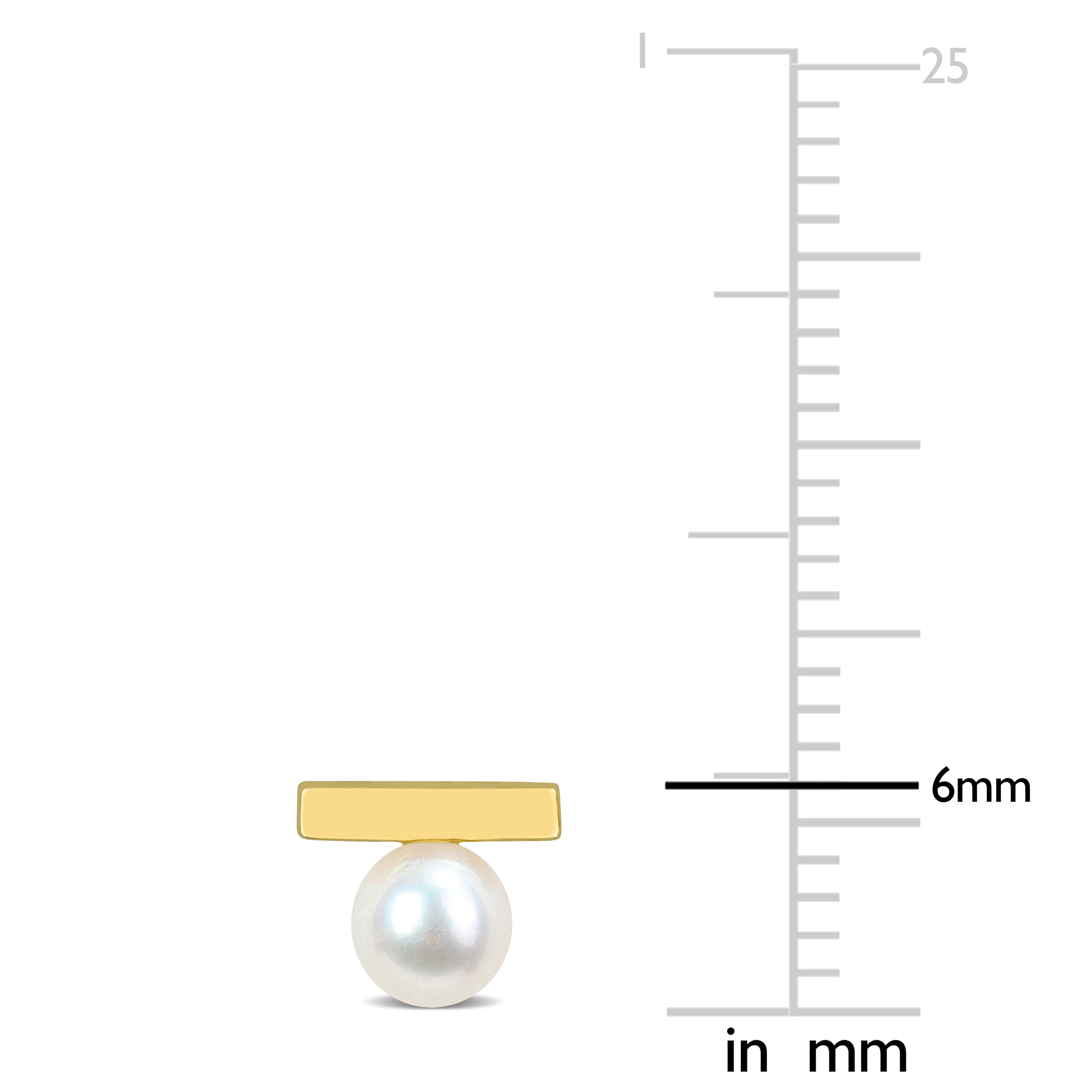 These elegant Cultured Freshwater Pearl Stud Earrings blend classic beauty with modern simplicity. Each earring features a lustrous white freshwater pearl, perfectly complemented by a sleek rectangular gold accent, creating a sophisticated and minimalist design. Crafted from high-quality 10k yellow gold, these studs offer a warm and radiant shine that enhances the natural beauty of the pearls.