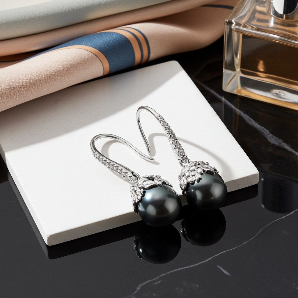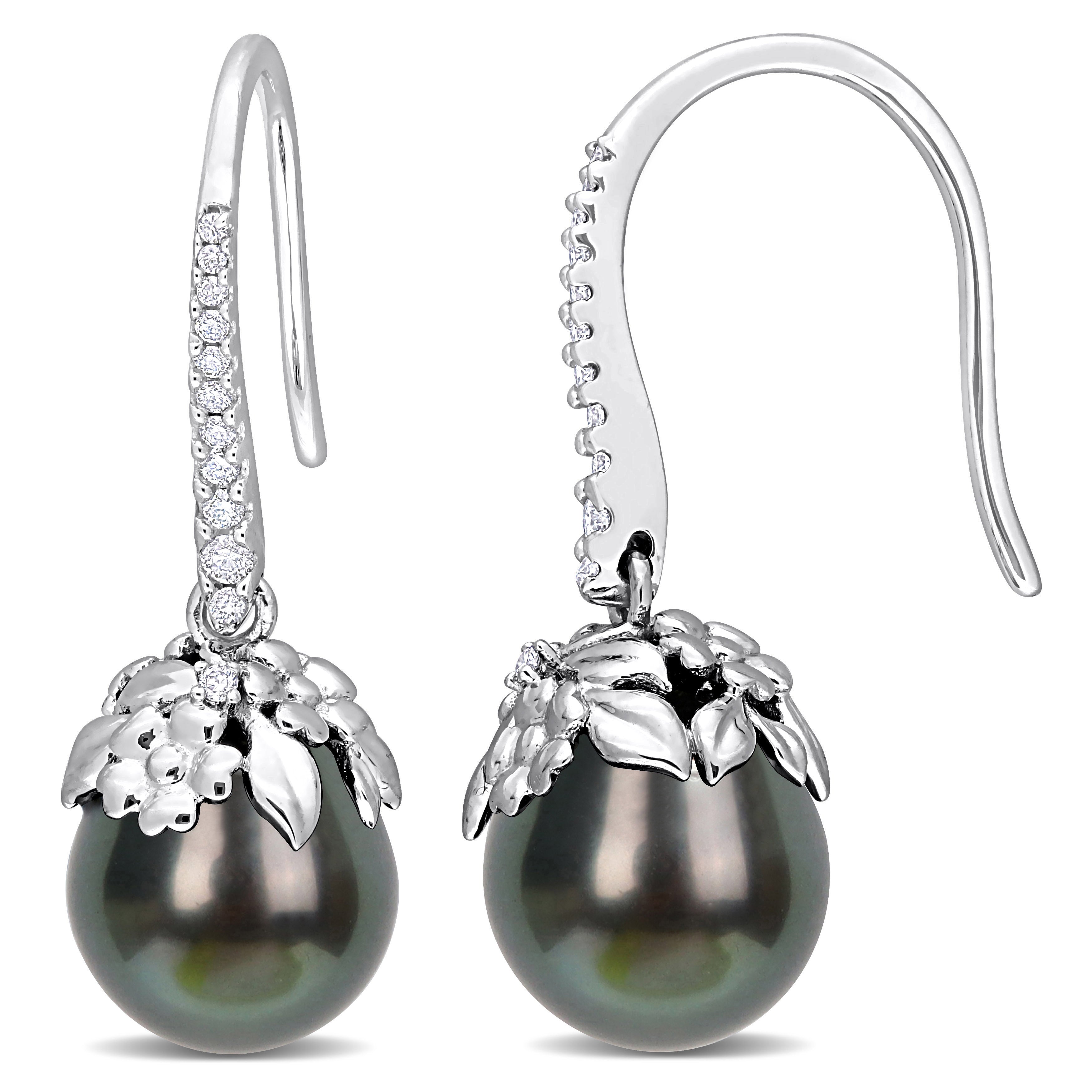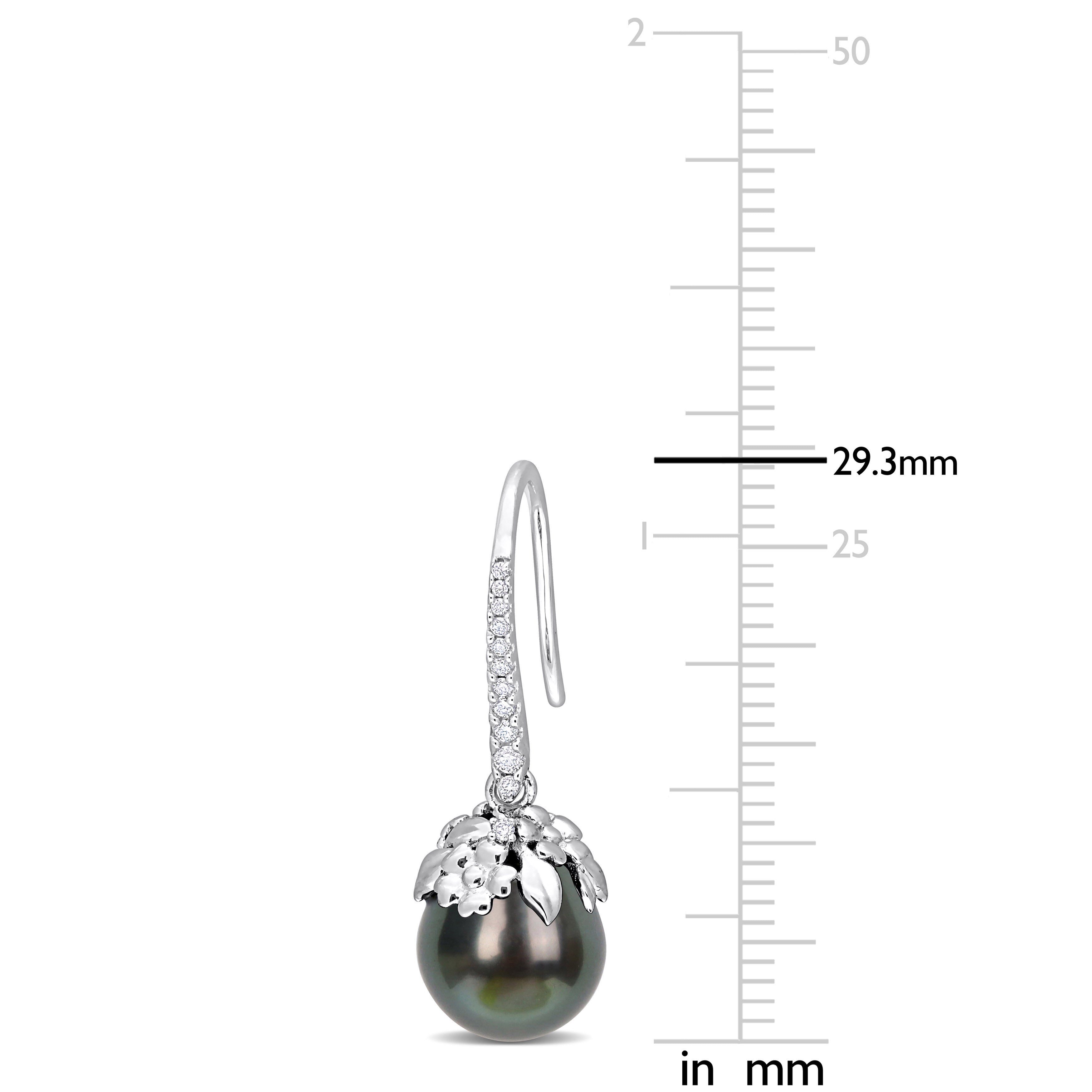 Cultured Tahitian Pearl & 1/7 CT TW Diamond Drop Earrings in 14k White Gold