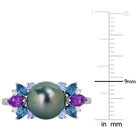 Add a pop of elegance to your look with this stunning floral ring. Featuring cultured Tahitian pearls, accented with London blue topaz, amethyst, tanzanite and white topaz. The colorful gemstones are artfully arranged in a floral cluster pattern for a vibrant yet classy design. Crafted in sterling silver, this ring is enhanced with a high polish finish.