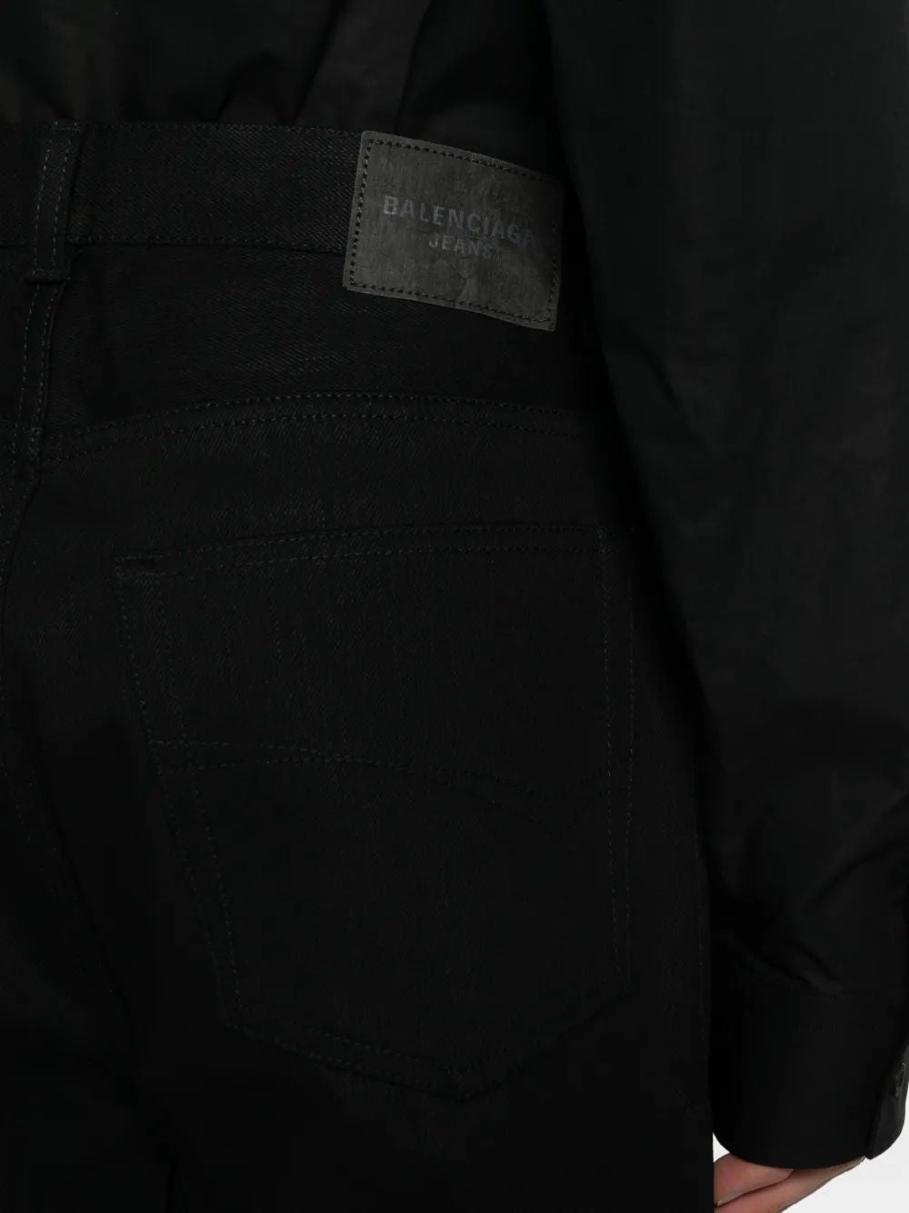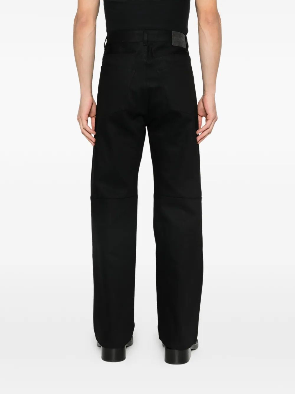 These sleek black pants feature an innovative curved knee design that adds architectural interest to a classic silhouette. Crafted with Balenciaga's signature attention to detail, they offer a relaxed yet refined fit that works effortlessly from day to night.