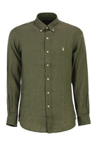 THE LIGHT AND BREATHABLE LINEN MAKES THIS SHIRT PERFECT FOR WARMER DAYS. - CUSTOM-FIT: A CONTOURED SILHOUETTE, MIDWAY BETWEEN THE CLASSIC-FIT AND SLIM-FIT MODELS - CONTOURED CUT AT THE WAIST - BUTTON-DOWN COLLAR - BUTTON-DOWN COLLAR - LONG SLEEVES WITH BUTTON CUFFS - DIVIDED BACK YOKE WITH CANNON PLEATS FOR A COMFORTABLE FIT AND GREATER FREEDOM OF MOVEMENT - EXCLUSIVE EMBROIDERED PONY ON THE LEFT SIDE OF THE CHEST DESIGNER ID: 710966294 513