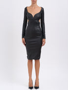 Make a statement in this stunning cut-out dress from Elisabetta Franchi. This sophisticated piece features a figure-hugging silhouette crafted from luxurious materials with sleek long sleeves and an alluring sweetheart neckline.