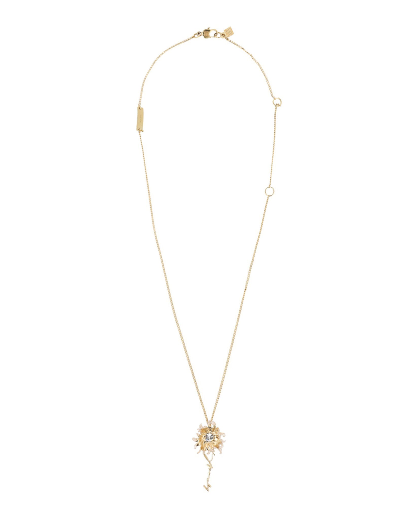 - Hand-painted enamel daisy pendant accented with a crystal-embellished center, finished with the signature detail below; Adjustable; Gold-tone hardware
