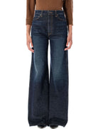 KHAITE DANE WIDE-LEG JEANS BLUE DARK BLUE COTTON POLYURETHANE WIDE-LEG JEANS DENIM CLOTHING WOMEN