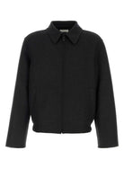DANTES JACKET IN DARK ANTHRACITE VIRGIN WOOL AND CASHMERE. FEATURES A POINTED COLLAR, FRONT ZIP AND BUTTON CLOSURE, ELASTICATED WAISTBAND AT THE BACK, AND TWO WELT POCKETS AT THE FRONT. REGULAR FIT.