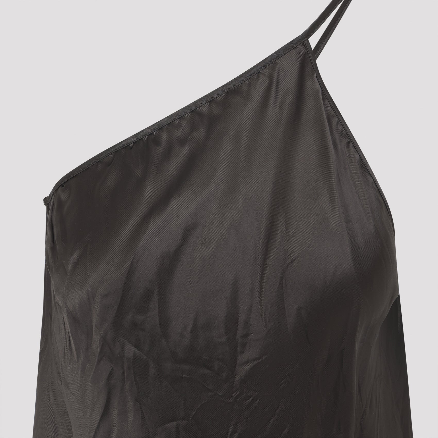 RICK OWENS ONE SHOULDER SLIP DARK BROWN CUPRO TOP. ONE-SHOULDER TOP CRAFTED FROM DARK BROWN CUPRO SATIN, FEATURING A BIAS CUT, A FINE STRAP, AND A STRAIGHT HEM.