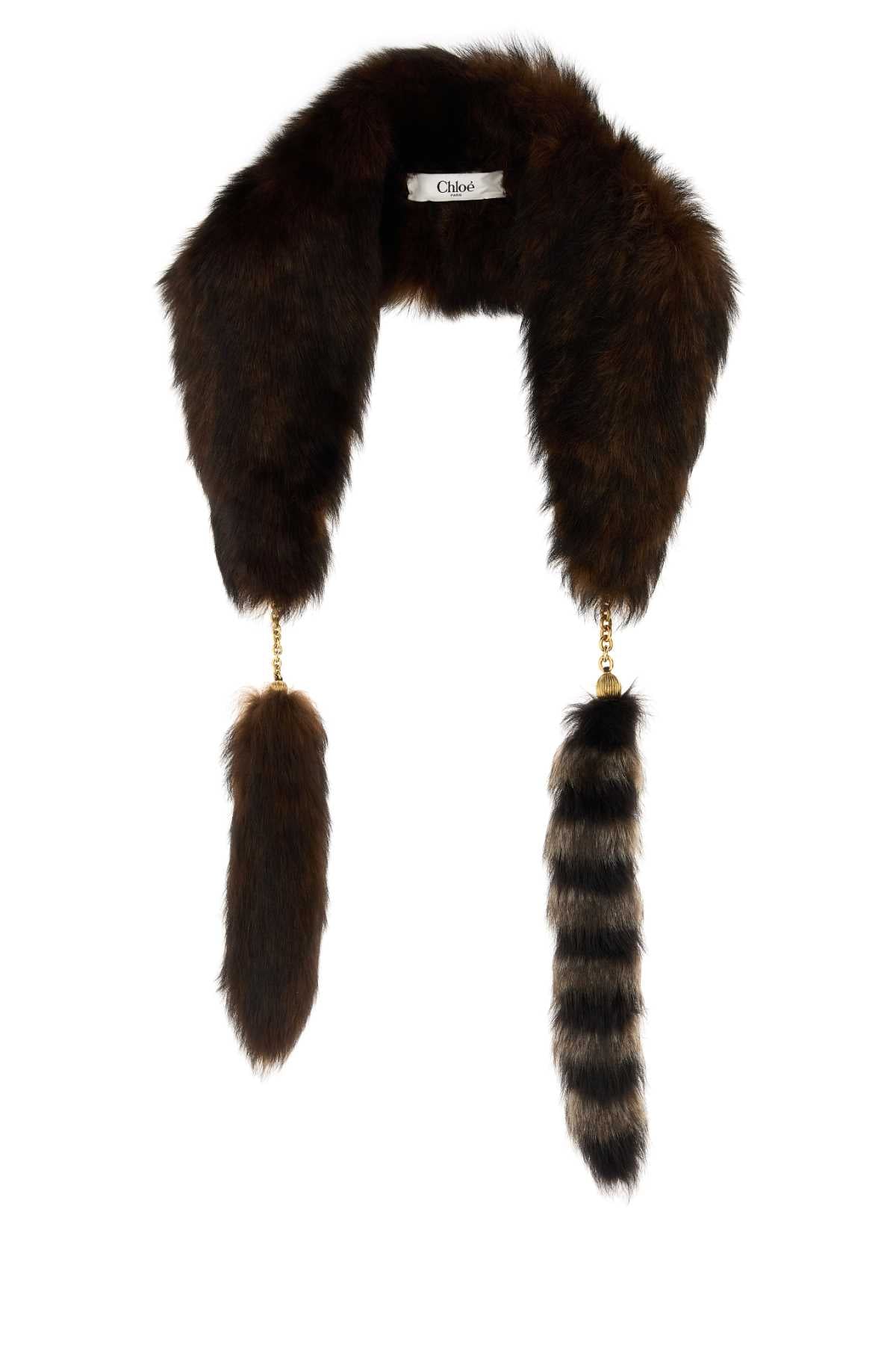 Elevate your cold-weather wardrobe with this luxurious Dark Brown Shearling Scarf from Chloé. This statement piece features sumptuous fur crafted into an elegant collar silhouette with dramatic hanging tails that add movement and sophistication to any ensemble.