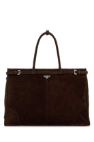 Elevate your everyday style with this luxurious Prada Dark Brown Suede Shopping Bag. Crafted from sumptuous suede in a rich chocolate brown hue, this spacious tote combines Italian craftsmanship with timeless sophistication.