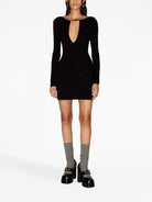 This striking AMBUSH Deep V-Neck Mini Dress makes a bold statement with its dramatic plunging neckline and sleek silhouette.