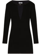 Crafted in luxurious black fabric, this long-sleeved mini dress perfectly balances sophistication with edge. The deep V-neckline creates an alluring focal point while the fitted design flatters your figure beautifully.