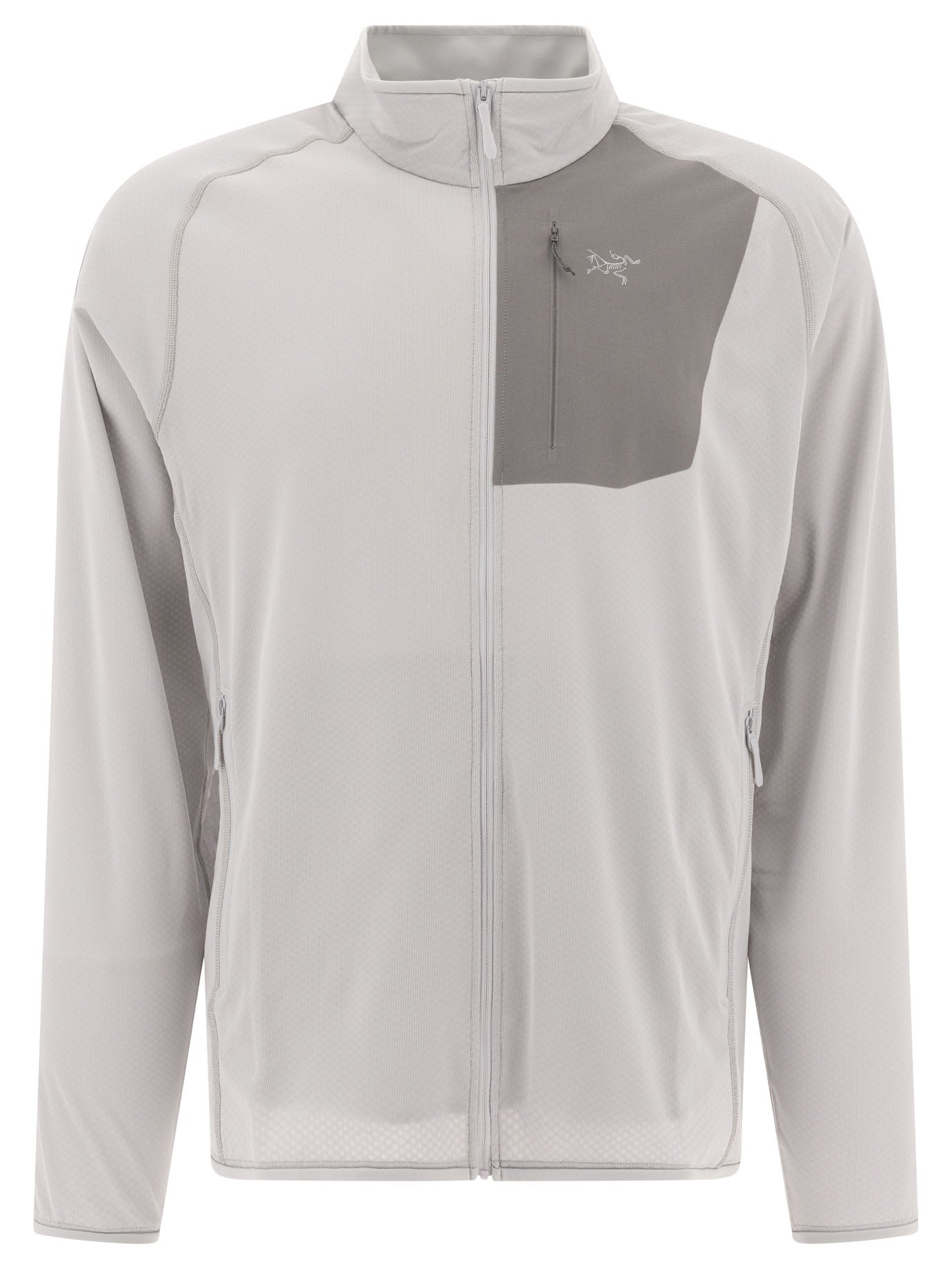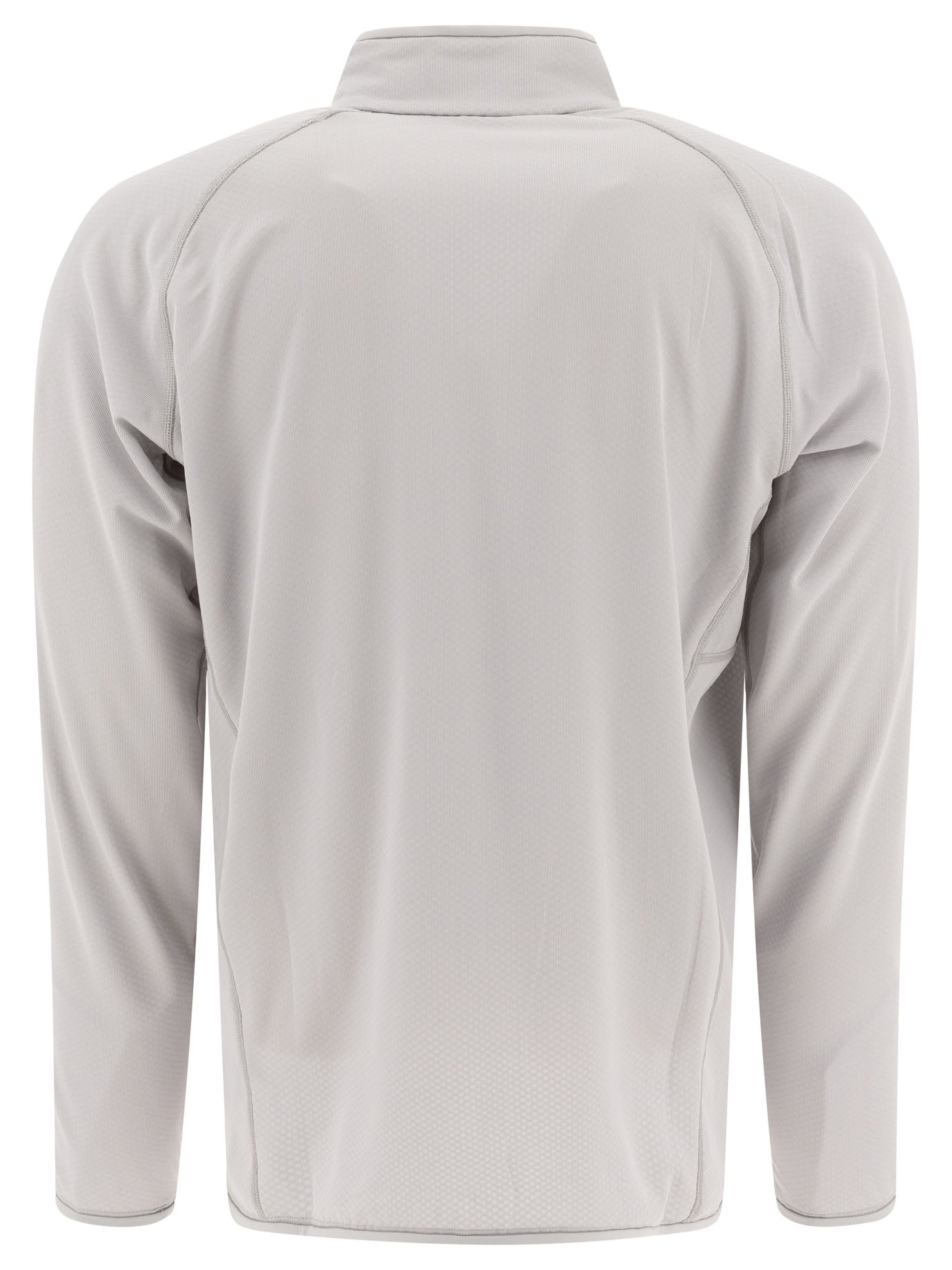 Arc'teryx "Delta" jacket made of Polartec® Power Dry® fleece featuring a hollow grid structure that maximizes the warmth-to-weight ratio. The construction is basic and free of superfluous elements, with strategic seams that promote freedom of movement. The silhouette is streamlined, designed to be worn as a midlayer or freestanding depending on outdoor conditions. The elastic properties of the material promote adaptability and functionality.