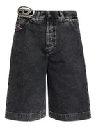 Elevate your warm-weather wardrobe with these Denim Bermuda Shorts from Diesel. Crafted in a sophisticated black faded wash, these shorts feature a classic five-pocket design with belt loops and sleek metal hardware for an edgy, contemporary finish. The bermuda length offers versatile styling options—pair them with a tucked-in blouse and sandals for a polished casual look, or dress them down with a graphic tee and sneakers for effortless off-duty style. Perfect for weekend adventures, vacation getaways, or everyday wear, these shorts combine Diesel's signature denim expertise with timeless design. A must-have staple that transitions seamlessly from season to season.