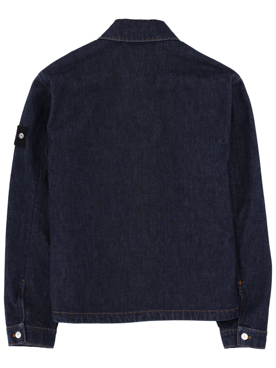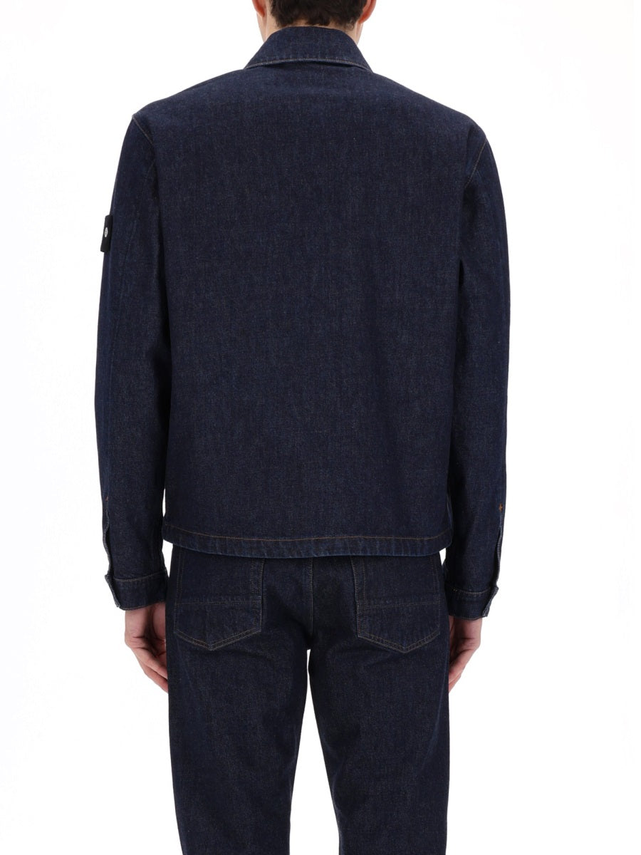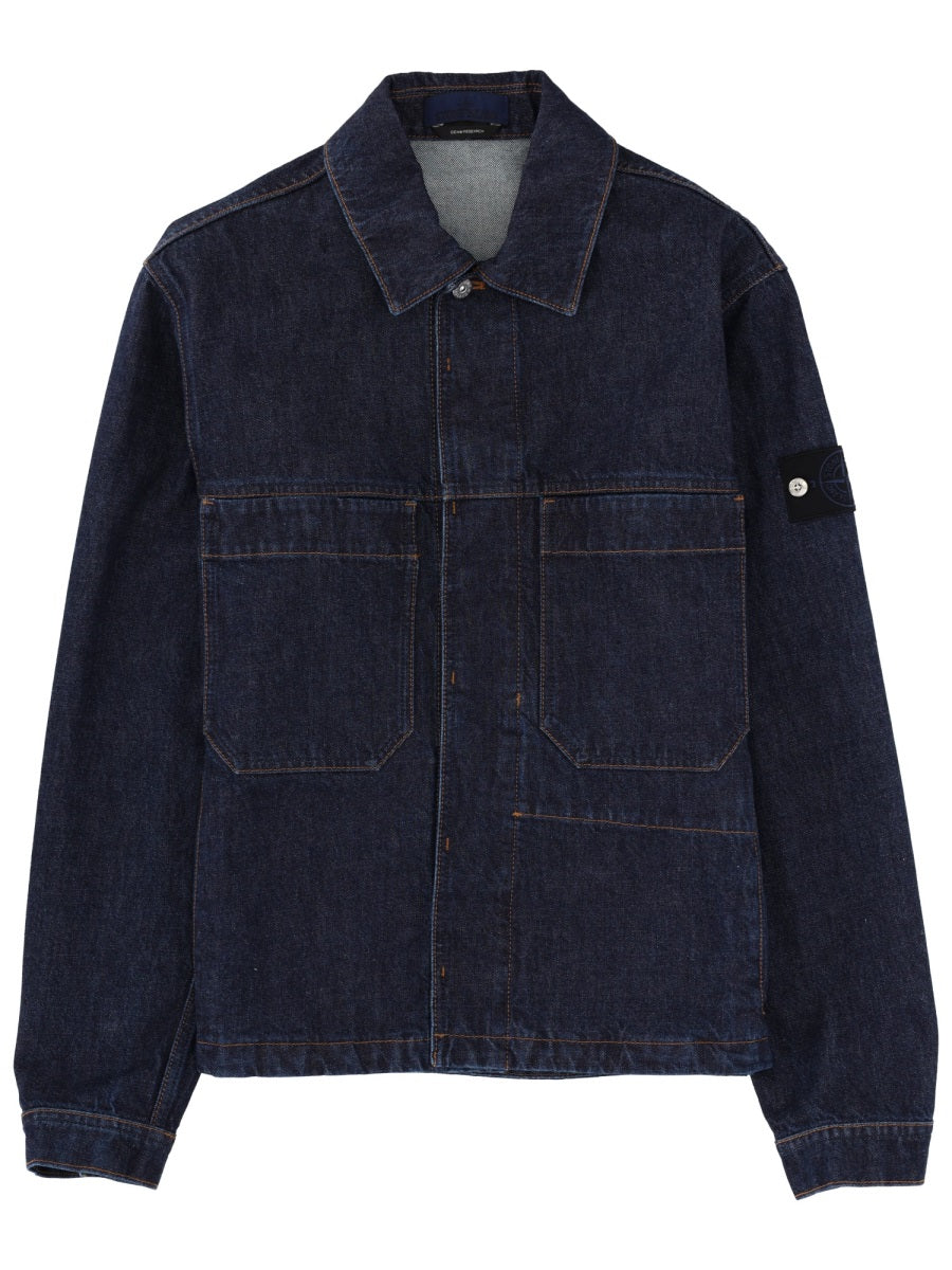Elevate your outerwear collection with this classic denim jacket from Stone Island, crafted from 100% premium cotton for exceptional comfort and durability.