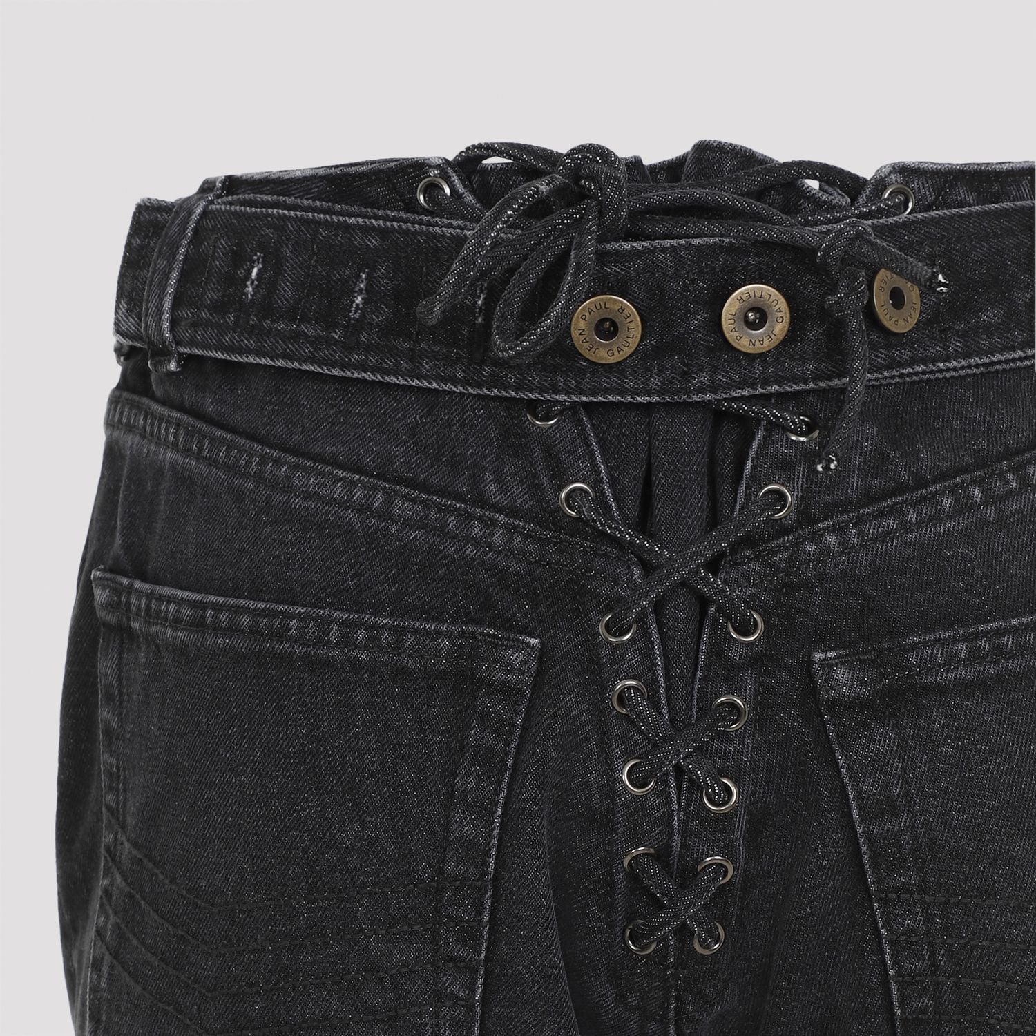 DENIM JEANS WITH LACING AND KNEE BONDING DETAIL