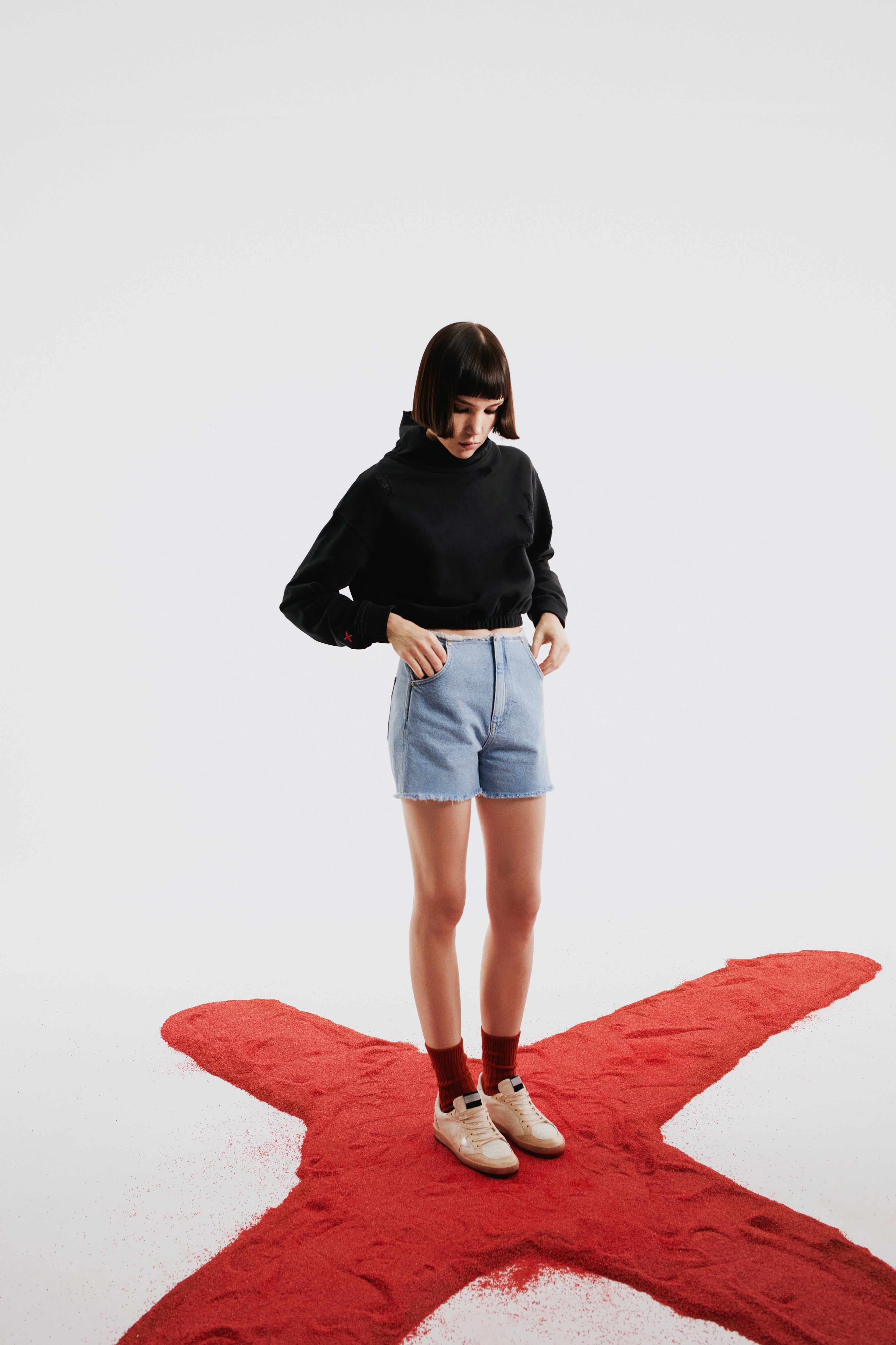 Whether you're layering it over your favorite jeans or pairing it with leggings for a more relaxed vibe, the Destroyed High Neck Sweat promises versatility and effortless style. The classic black hue makes it an easy staple for any wardrobe, ensuring you look and feel your best no matter the occasion.
